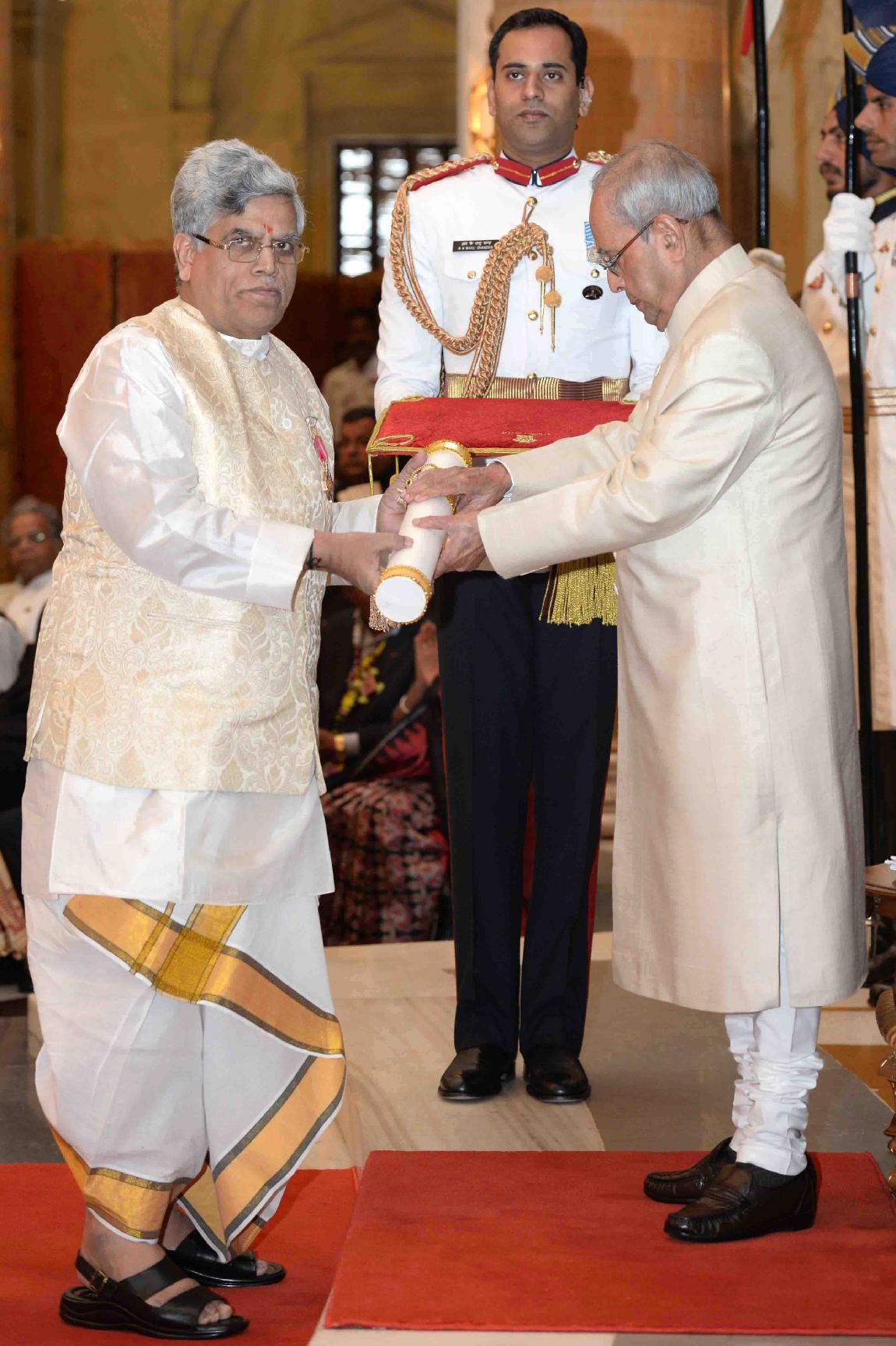 | Caption: | The President of India, Shri Pranab Mukherjee presenting the Padma Bhushan awards, at the Civil Investiture Ceremony II, at Rashtrapati Bhavan on April 13, 2017. |