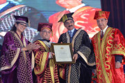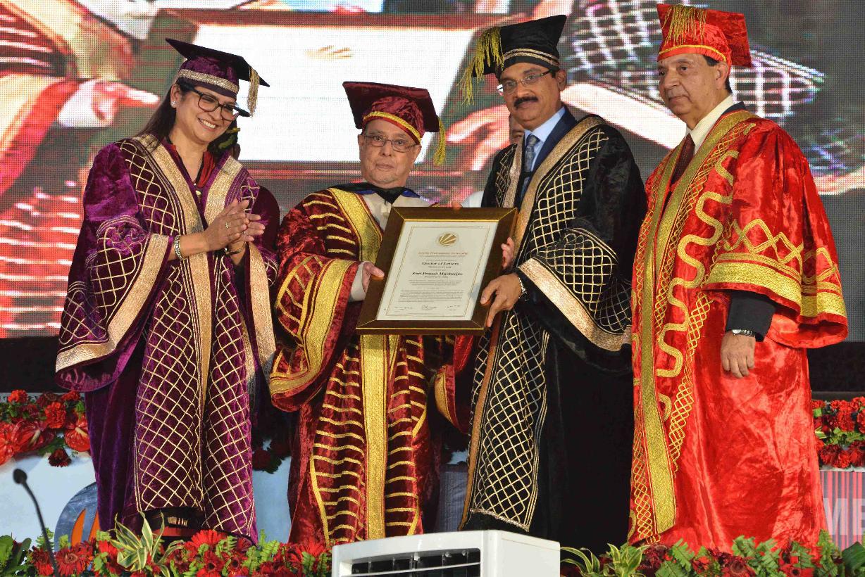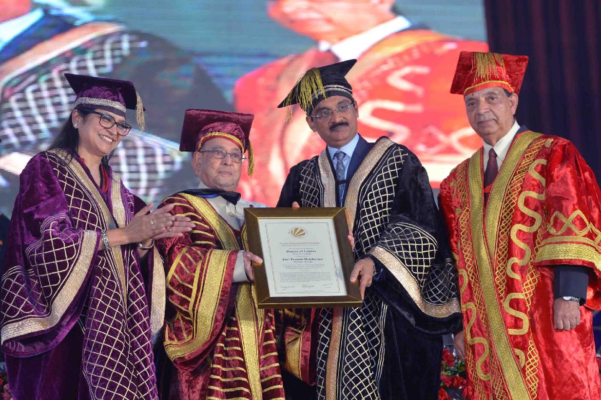 | Caption: | The President of India, Shri Pranab Mukherjee being conferred the Doctorate Honoris Causa Degree by the Chancellor of Lovely Professional University (LPU), Shri Ashok Kumar Mittal, at the 8th Convocation of LPU, at Phagwara, in Punjab on May 02, 2017. |