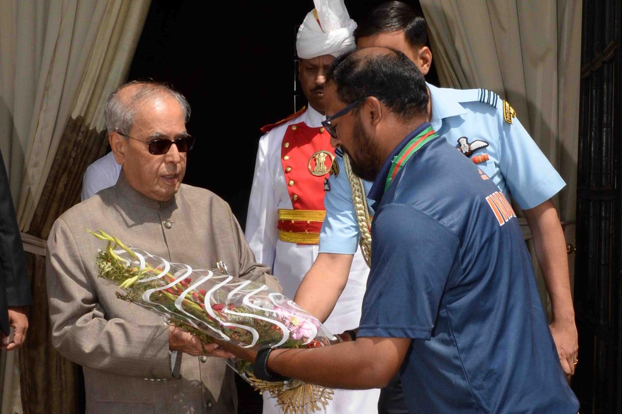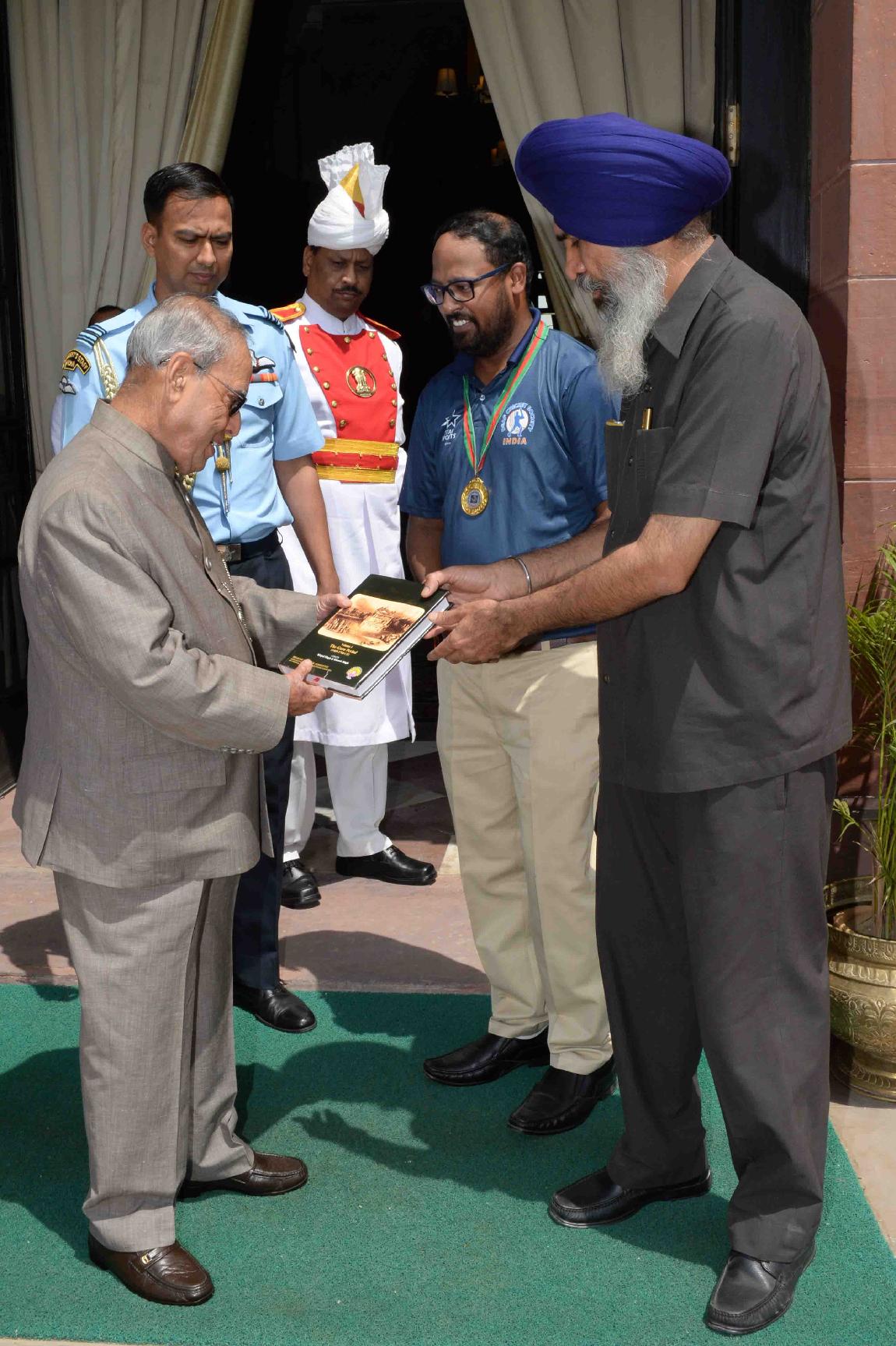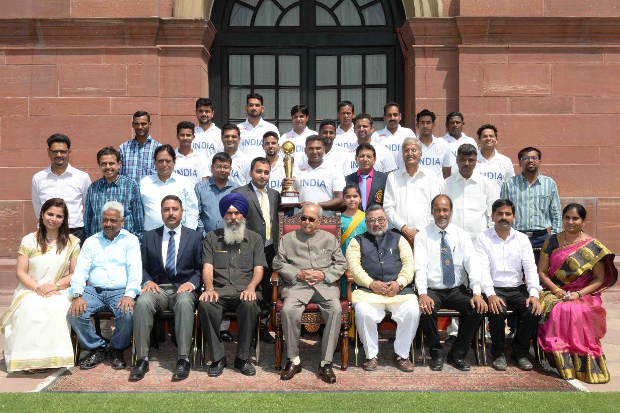 | Caption: | The President of India, Shri Pranab Mukherjee in Group Photograph with the Members of Indian Deaf Cricket Teams participated in the 3rd Deaf Cricket Asia Cup, 2017, at Hyderabad and 2nd T-20 Asia Cup Cricket Championship for Deaf 2017 at Dhaka alongwith officials of All India Cricket Association of the Deaf Cricket Society, at Rashtrapati Bhavan on April 19, 2017. |