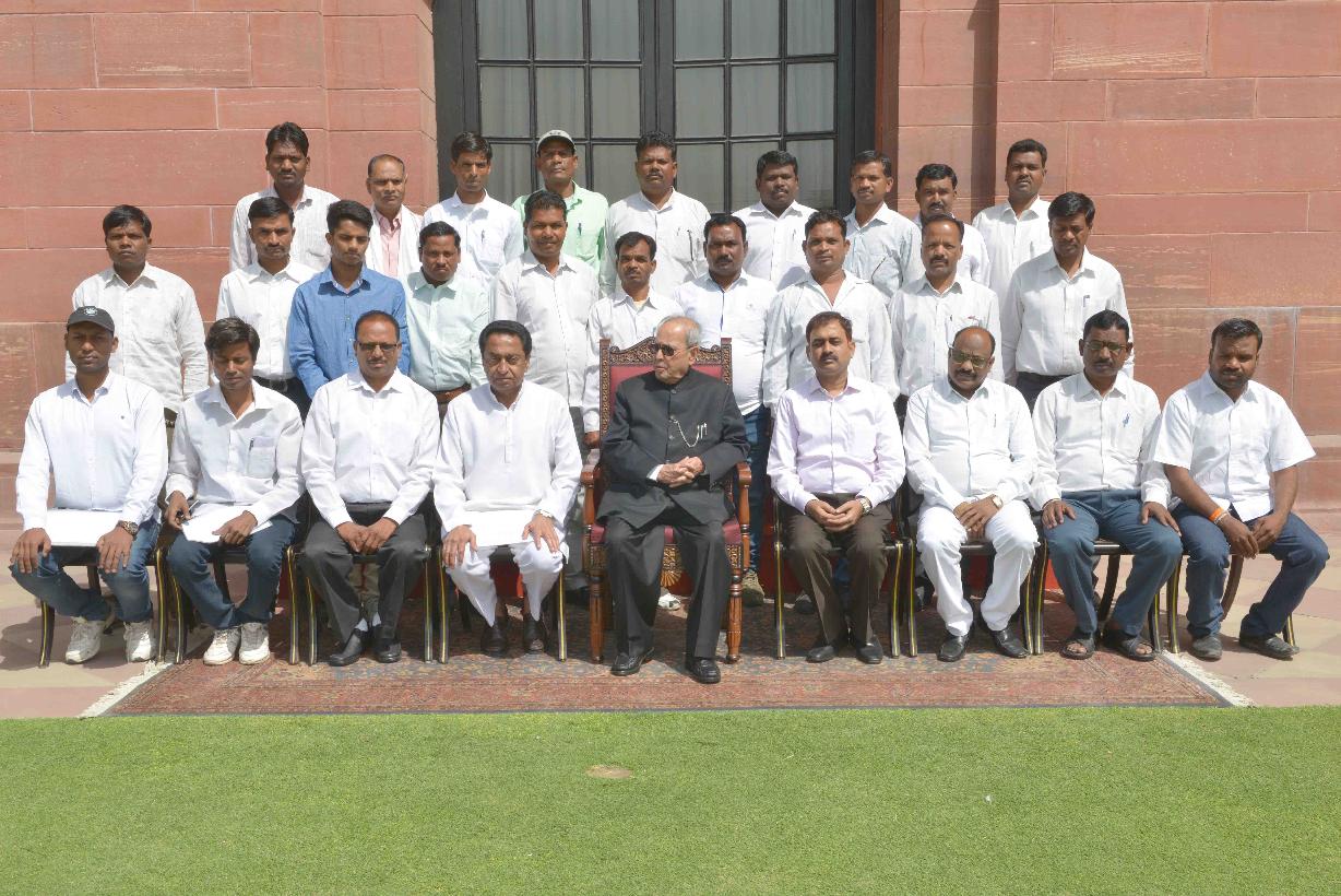 | Caption: | The President of India, Shri Pranab Mukherjee meeting with Shri Kamal Nath, MP (LS) & former Union Minister along with Shri Sanjay Paretati and others from Chhindwara, at Rashtrapati Bhavan on April 08, 2017. |