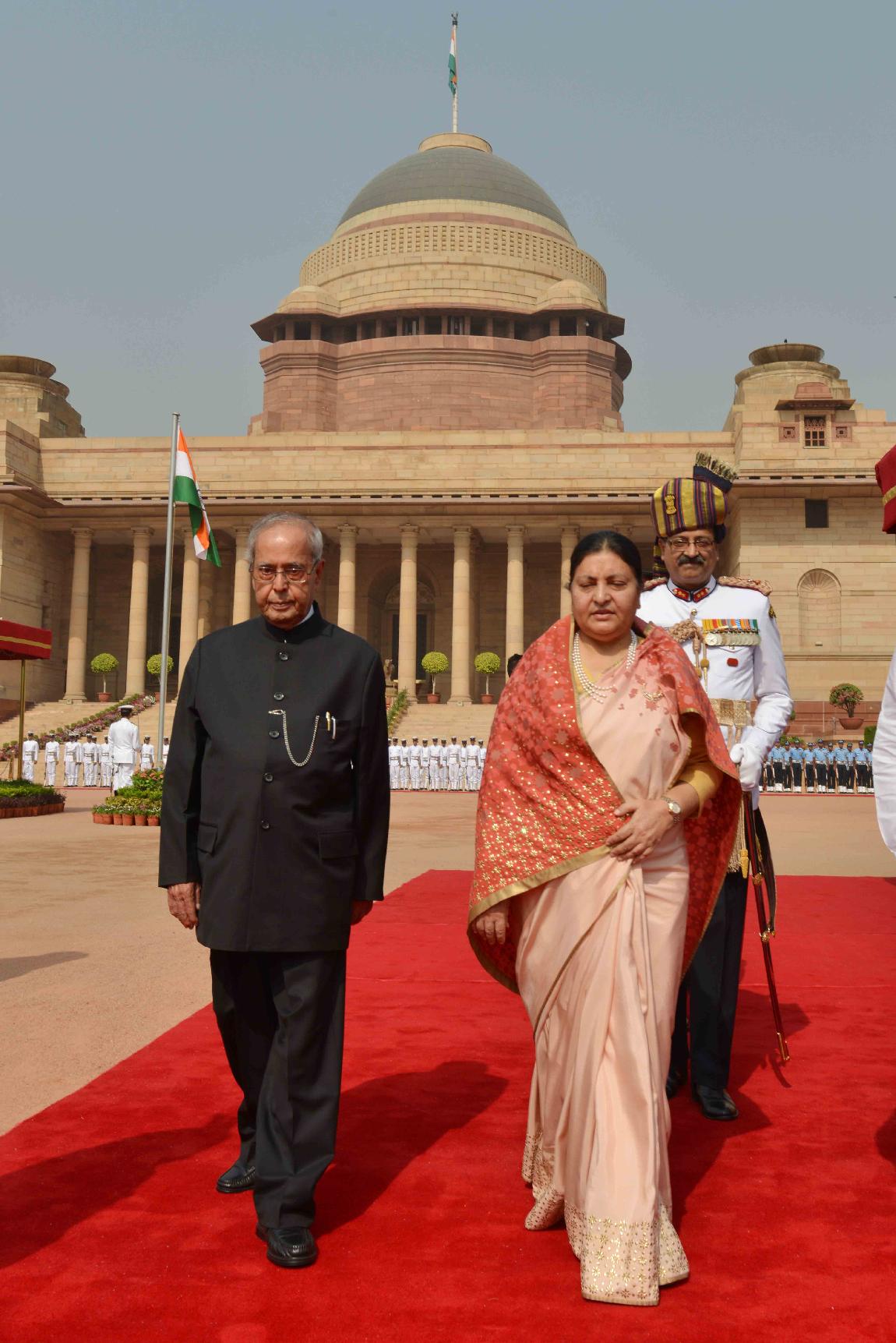 | Caption: | The President of India, Shri Pranab Mukherjee at the Ceremonial Reception of the President of Nepal, Right Hon'ble Bidya Devi Bhandari, at Forecourt of Rashtrapati Bhavan on April 18, 2017. |