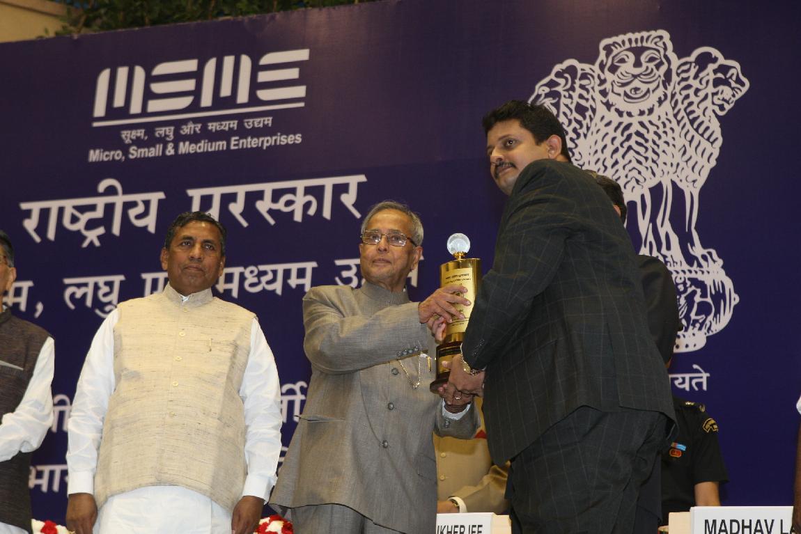 | Caption: | The President of India, Shri Pranab Mukherjee Presenting The National Awards for Outstanding Entrepreneurship on April 03, 2013 |