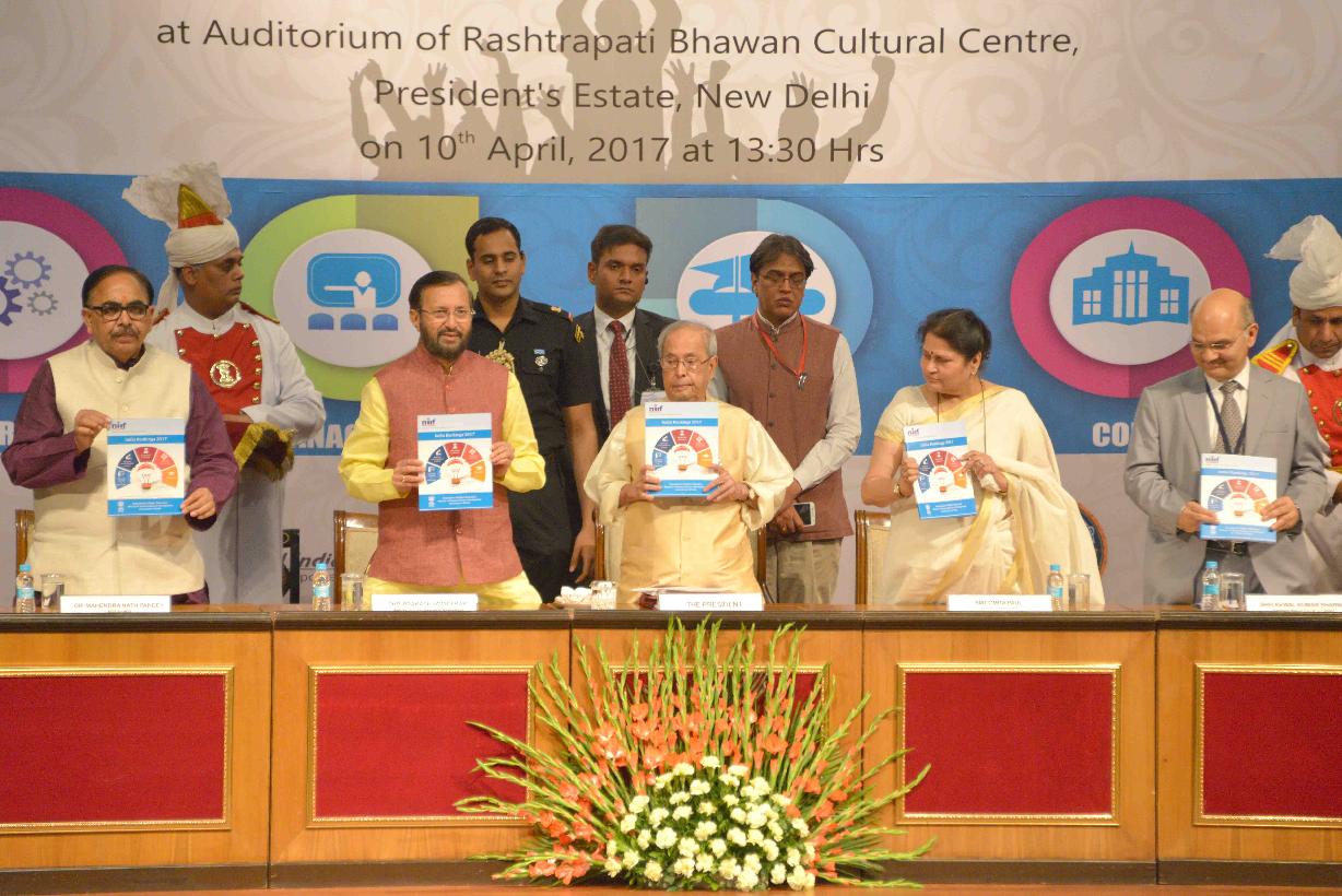 | Caption: | The President of India, Shri Pranab Mukherjee releasing the India Rankings 2017 (National Institutional Ranking Framework - 2017) and presenting awards to the Top Rank Institutions, at Rashtrapati Bhavan Auditorium on April 10, 2017. |