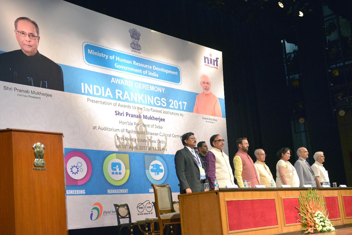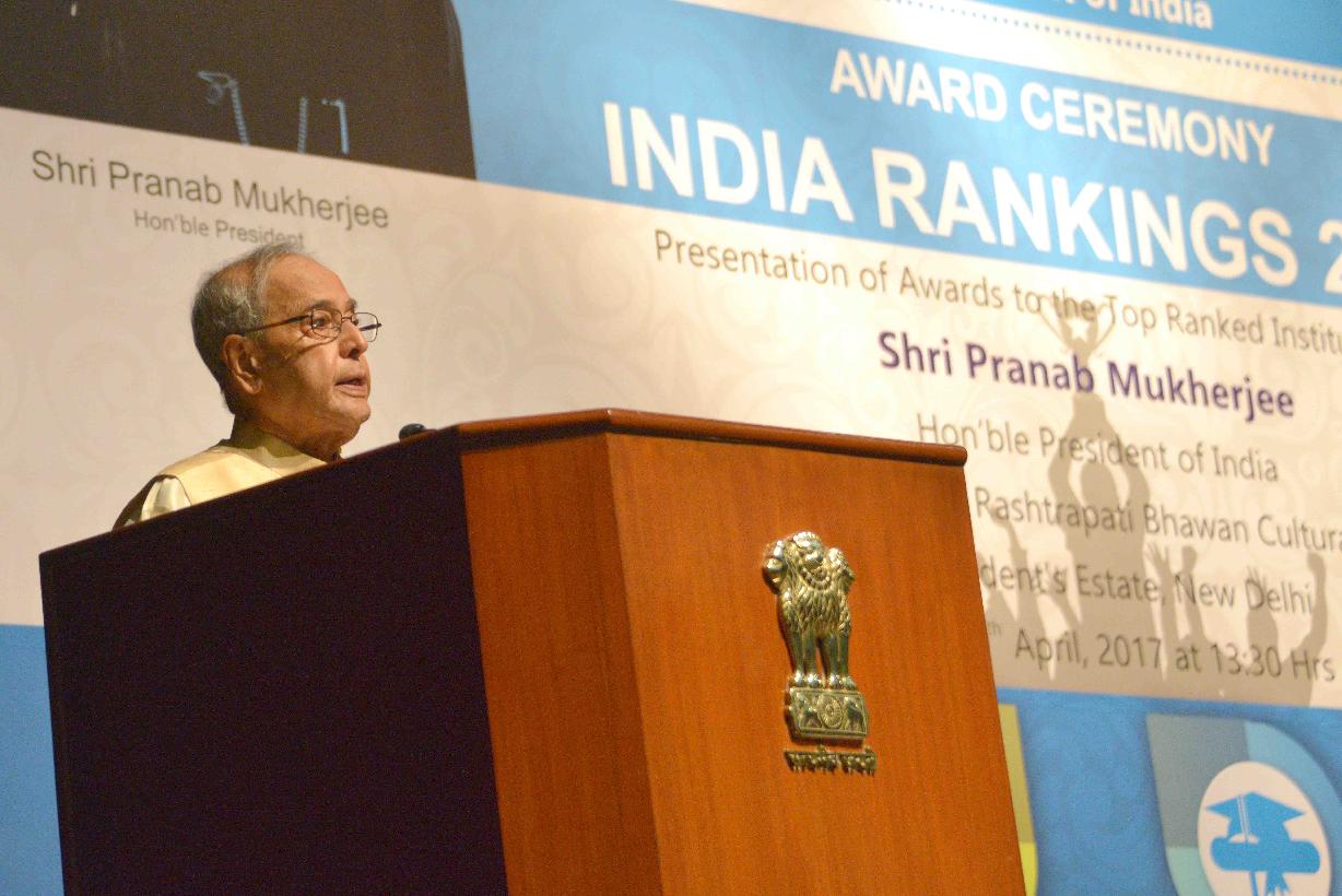 | Caption: | The President of India, Shri Pranab Mukherjee addressing at the release of the India Rankings 2017 (National Institutional Ranking Framework - 2017), at Rashtrapati Bhavan Auditorium on April 10, 2017. |