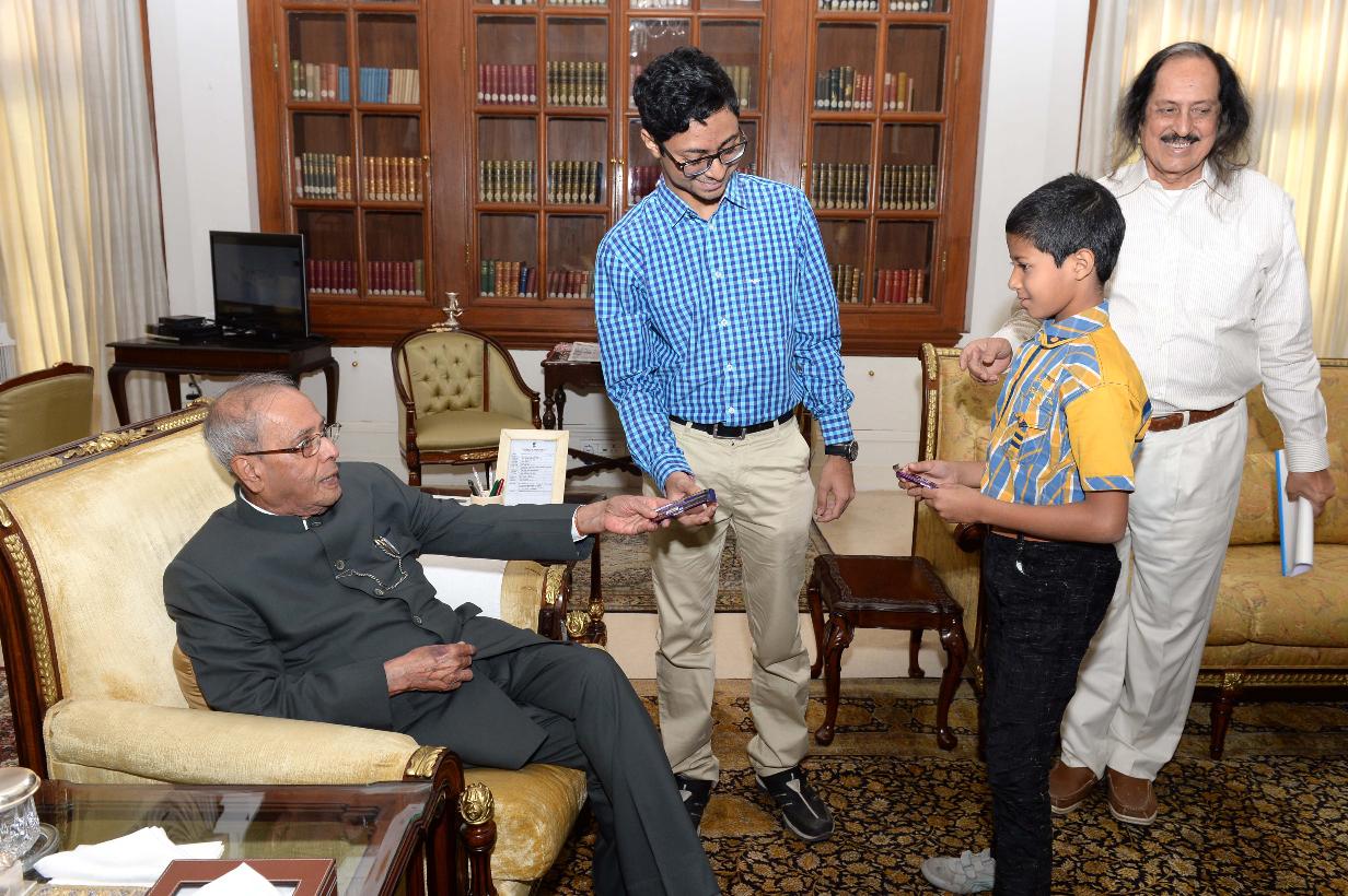 | Caption: | The President of India, Shri Pranab Mukherjee meeting with Dr. Sushoban Banerjee with others, at Rashtrapati Bhavan on May 15, 2017. |