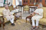 | Caption: | The President of India, Shri Pranab Mukherjee meeting with Shri Jogen Chowdhury, MP (RS), at Rashtrapati Bhavan on April 13, 2017. |