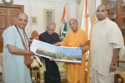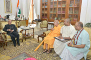 | Caption: | The President of India, Shri Pranab Mukherjee meeting with HH Gopal Krishna Goswami Maharaj, Head of ISKCON alongwith Shri Yudhistir Govinda Das and Shri Adwait Krishna, at Rashtrapati Bhavan on April 20, 2017. |