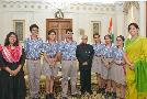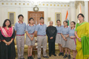 | Caption: | The President of India, Shri Pranab Mukherjee meeting with Ms. Alka Awasthi, Principal with students and teacher from KR Mangalam World School, Greater Kailash-II, at Rashtrapati Bhavan on April 20, 2017. |