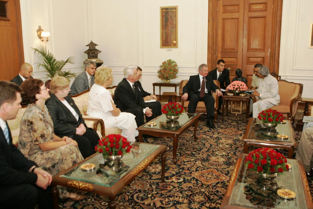 | Caption: | The Parliamentary Delegation from the Republic of Belarus Led by the Chairman of the Republic of Belarus National Assembly Council, HE Mr Gennady V Novitsky calling on the President of India, Dr A P J Abdul Kalam at the Morning Room of Rashtrapati Bhavan in New Delhi on July 25, 2006 |