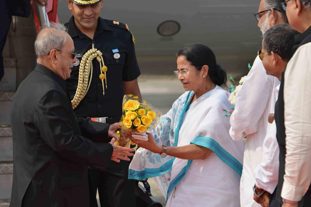 | Caption: | The President of India, Shri Pranab Mukherjee being received by the Chief Minister of West Bengal, Ms. Mamata Banerjee, on his Arrival, at Netaji Subhash Chandra Bose International Airport, Kolkata, in West Bengal on May 18, 2017. |