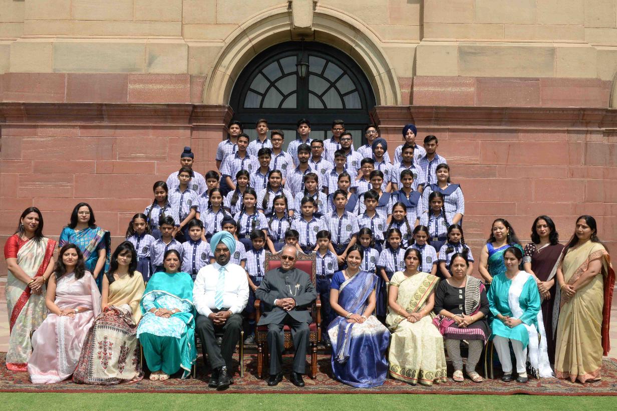 | Caption: | The President of India, Shri Pranab Mukherjee in group photographs with the students and teachers from Mount View Public School, Mohali, at Rashtrapati Bhavan on May 17, 2017. |