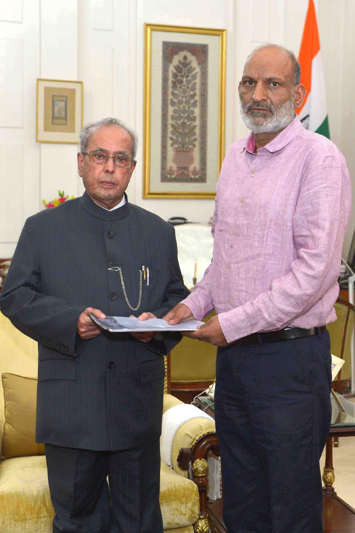 | Caption: | The President of India, Shri Pranab Mukherjee meeting with Dr. S.C. Singh, Director, HNB Garhwal University alongwith Dr. Pankaj Bharati and Dr. R.S. Guleria from Kangra (HP), at Rashtrapati Bhavan on May 17, 2017. |