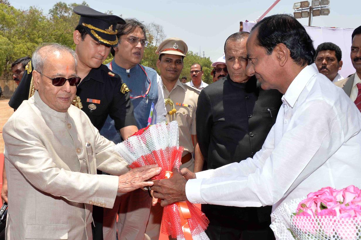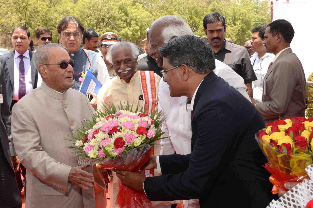 | Caption: | The President of India, Shri Pranab Mukherjee being welcomed at the inaugural function of the Centenary Celebrations of Osmania University, at Hyderabad, in Telangana on April 26, 2017. |