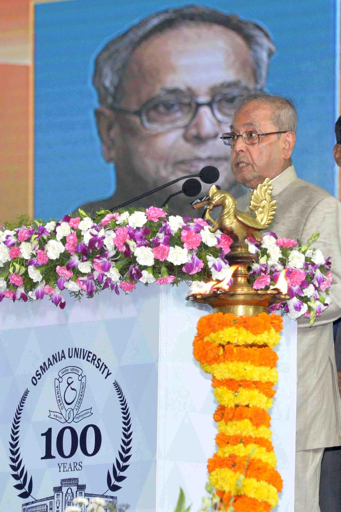 | Caption: | The President of India, Shri Pranab Mukherjee gracing the inaugural function of the Centenary Celebrations of Osmania University, at Hyderabad, in Telangana on April 26, 2017. |