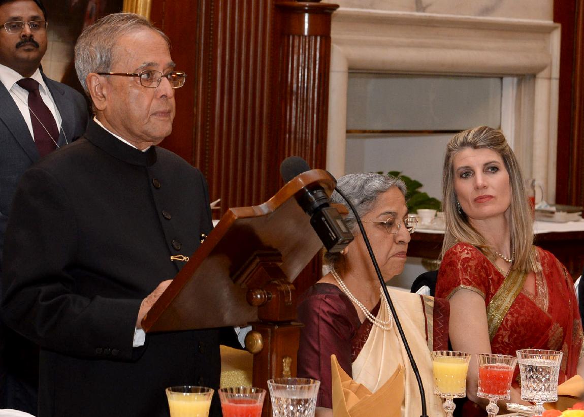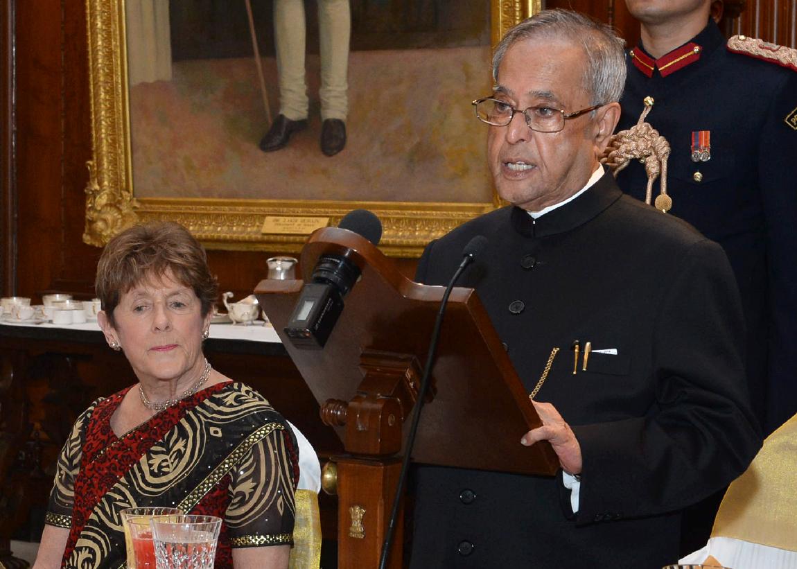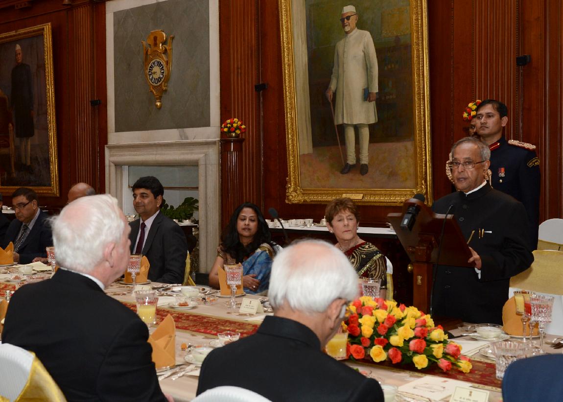 | Caption: | The President of India, Shri Pranab Mukherjee at the Banquet Hosted in Honour of the General of Canada, HE The Rt Hon David Johnston at Rashtrapati Bhavan in New Delhi on Feb 24, 2014 |