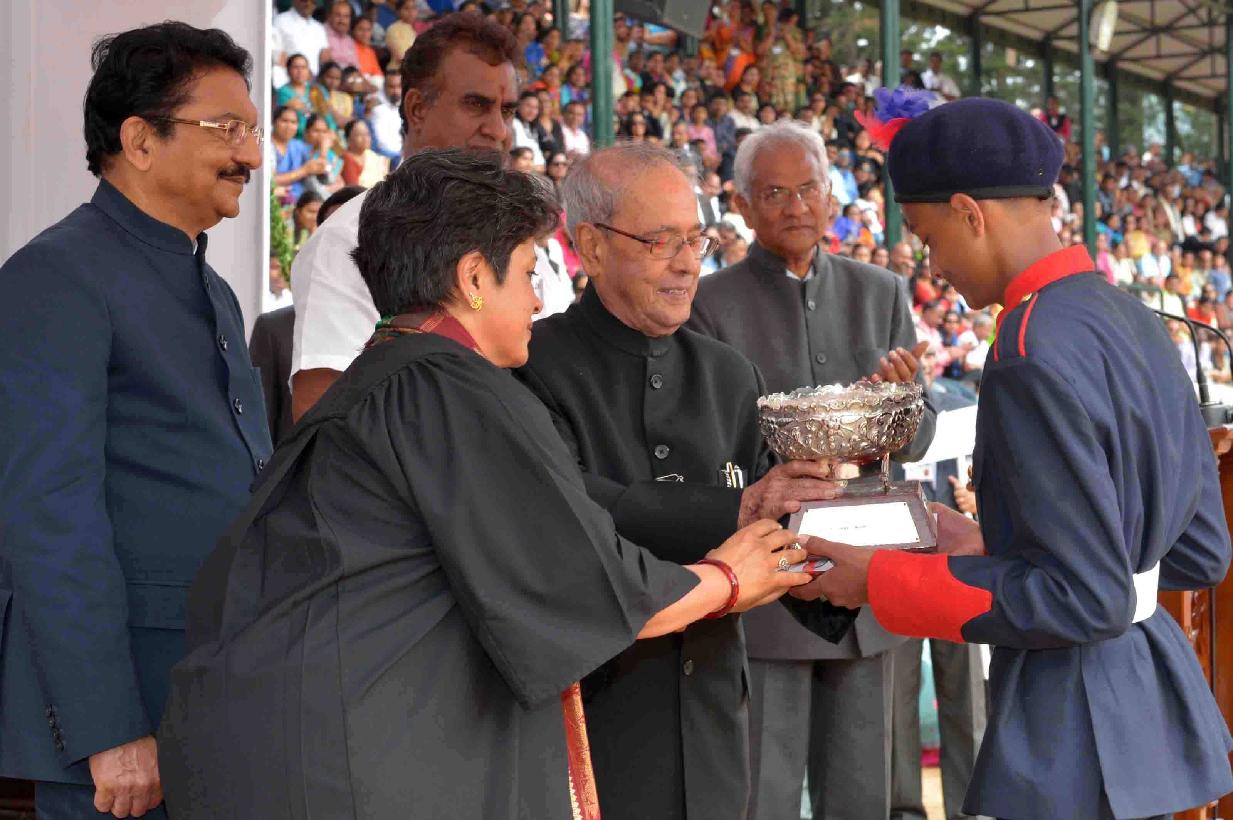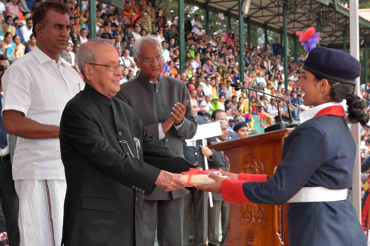 | Caption: | The President of India, Shri Pranab Mukherjee presenting prizes, at the 159th Founder s Day Celebrations of Lawrence School, at Ootacamund, The Nigiris, in Tamil Nadu on May 23, 2017. |