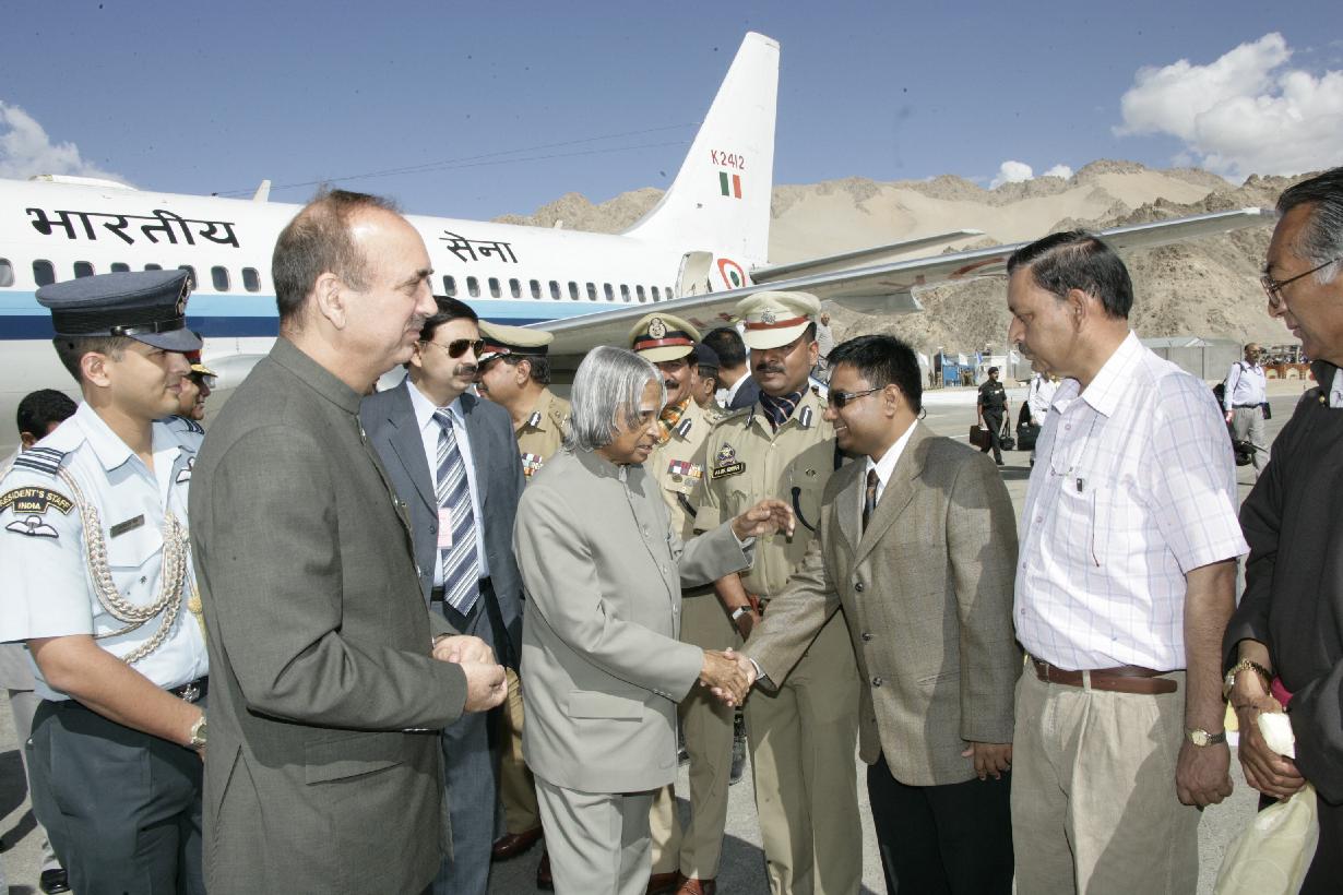 | Caption: | The President of India, Dr A P J Abdul Kalam arriving at Leh Airport in Jammu & Kashmir on July 28, 2006 |