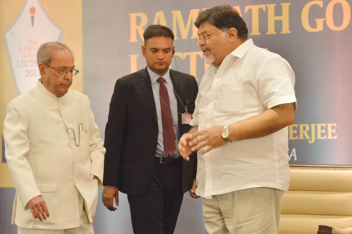 | Caption: | The President of India, Shri Pranab Mukherjee during the Ramnath Goenka Memorial Lecture, in New Delhi on May 25, 2017. |