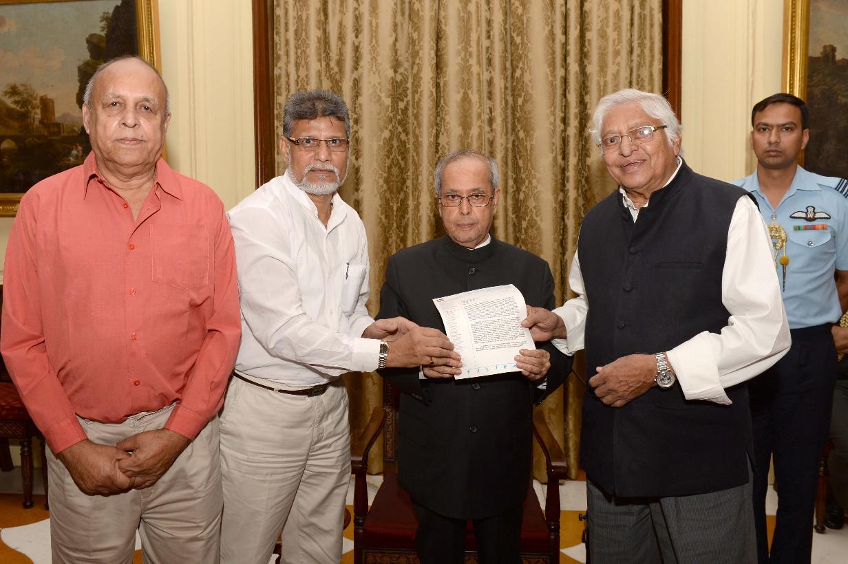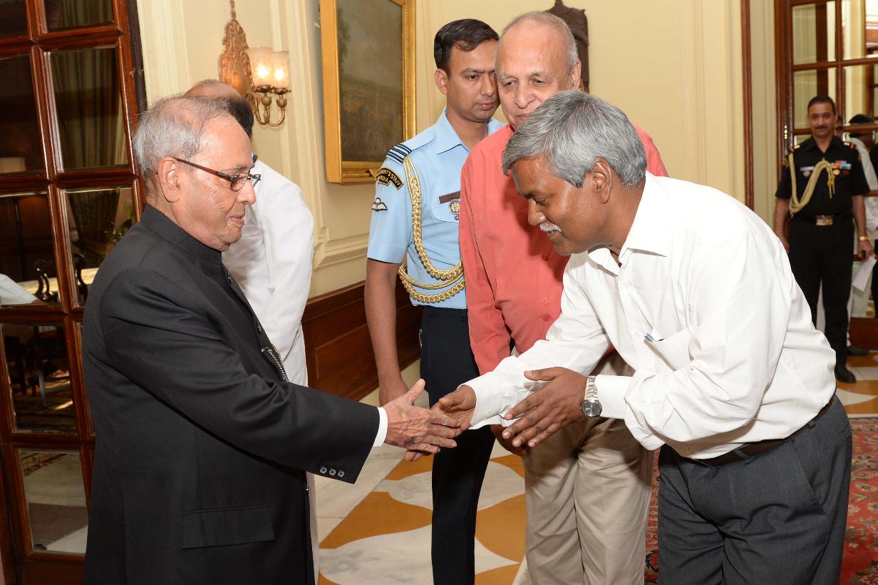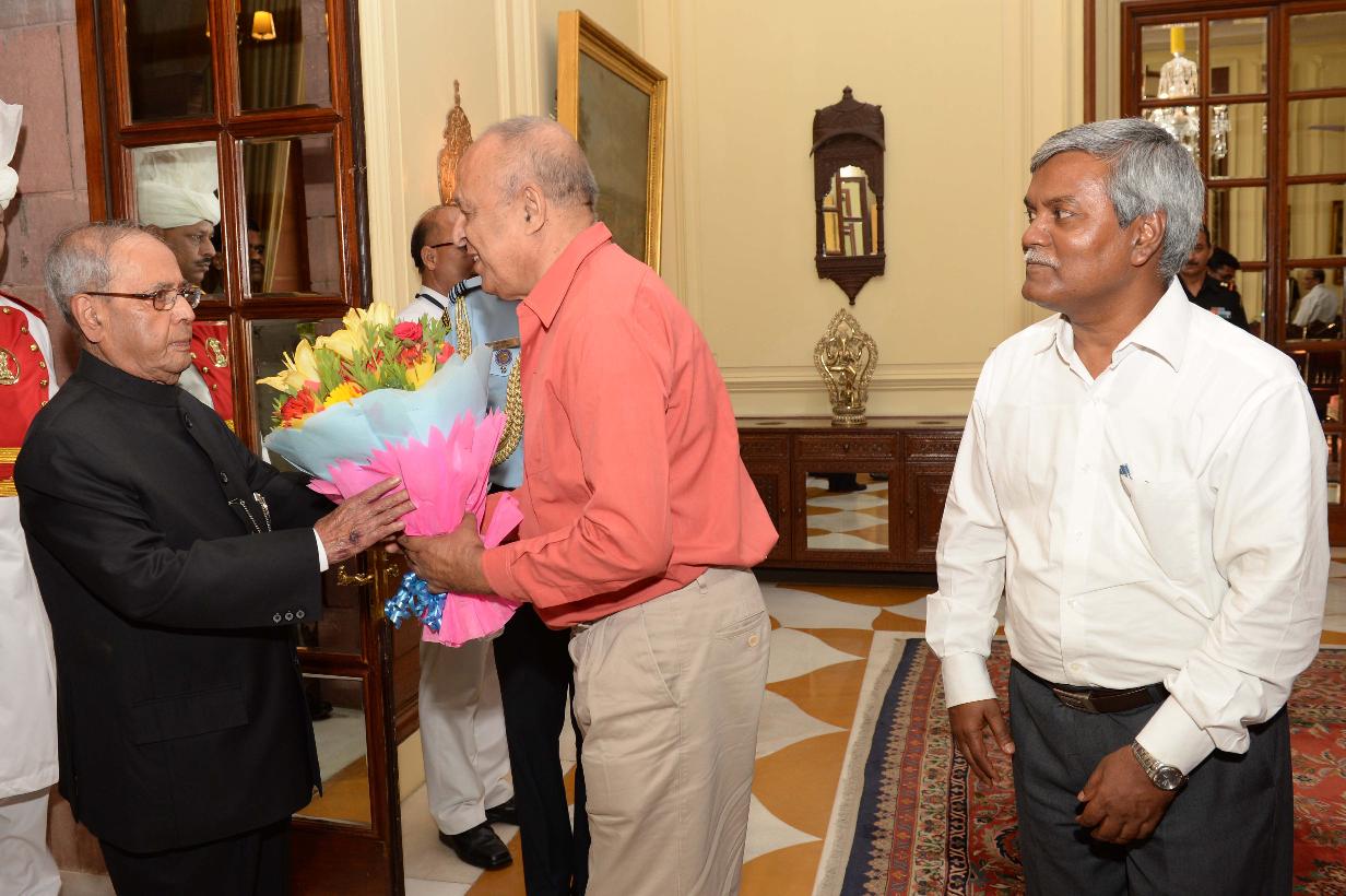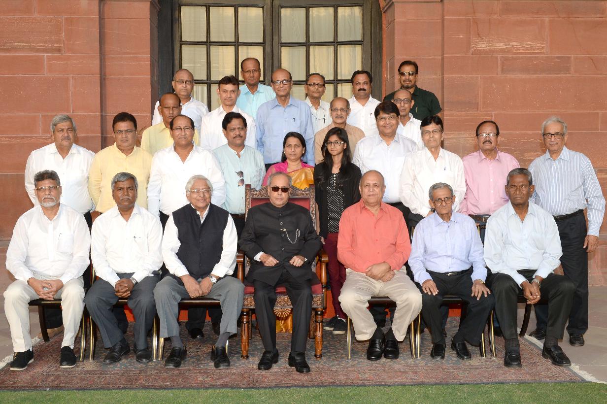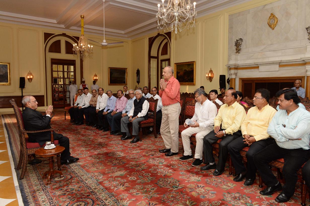 | Caption: | The President of India, Shri Pranab Mukherjee meeting with the members of the Kolkata Veterans Sports Club led by Prof. Bimal Roy, Patron of the Club, at Rashtrapati Bhavan on May 26, 2017. |