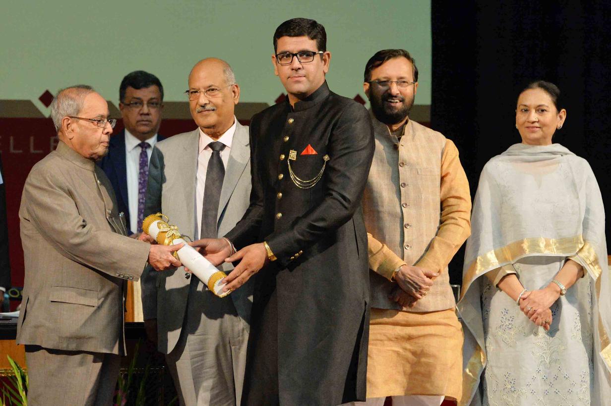 | Caption: | The President of India, Shri Pranab Mukherjee presenting the Malti Gyan Peeth Puruskars for the year 2017, at Rashtrapati Bhavan Auditorium on May 29, 2017. |