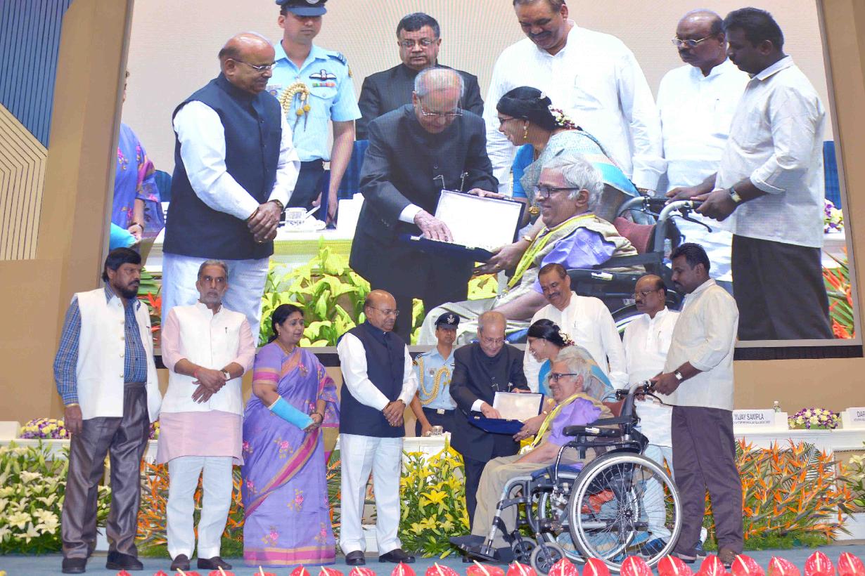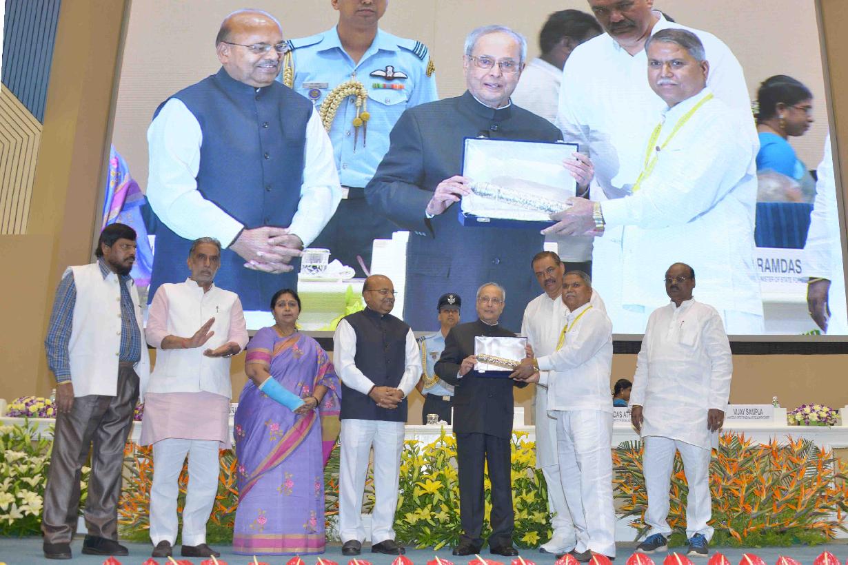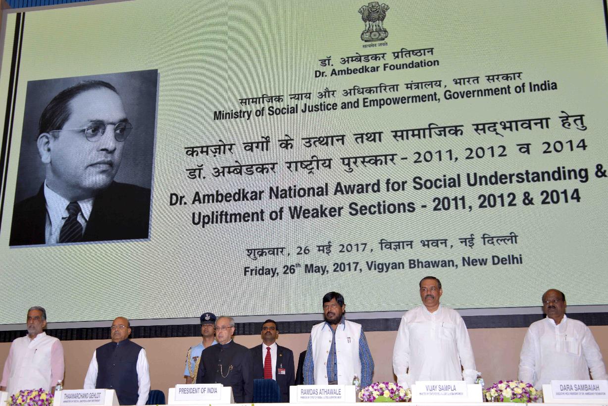 | Caption: | The President of India, Shri Pranab Mukherjee presenting the Dr. Ambedkar National Awards For the Year 2011, 2012 & 2014, in New Delhi on May 26, 2017. |