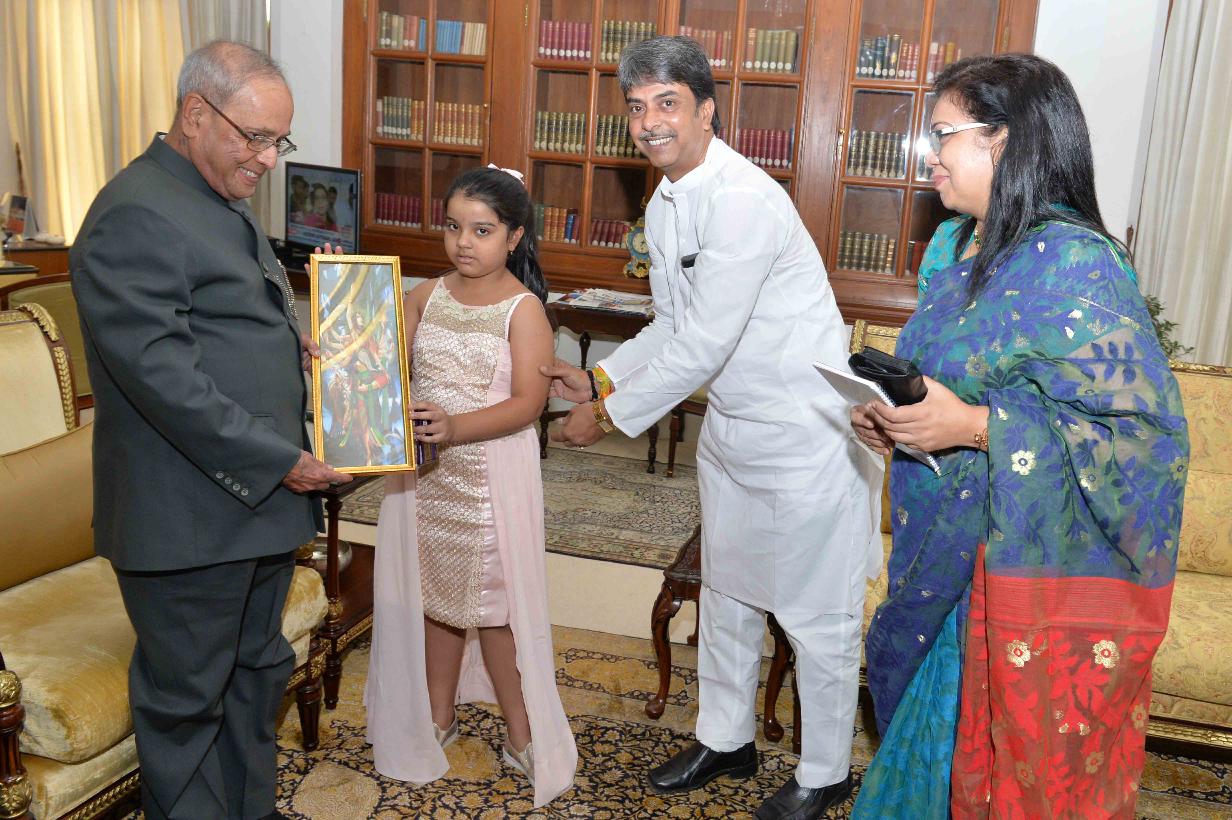 | Caption: | The President of India, Shri Pranab Mukherjee meeting with Smt. & Shri Bipradas Chakraborty alongwith their daughter Ms. Anushka Chakraborty, at Rashtrapati Bhavan on June 01, 2017. |