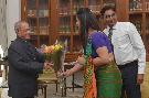 | Caption: | The President of India, Shri Pranab Mukherjee meeting with Shri Sunil Garg, Joint CP (Security), Delhi Police alongwith his family members, at Rashtrapati Bhavan on June 08, 2017. |
