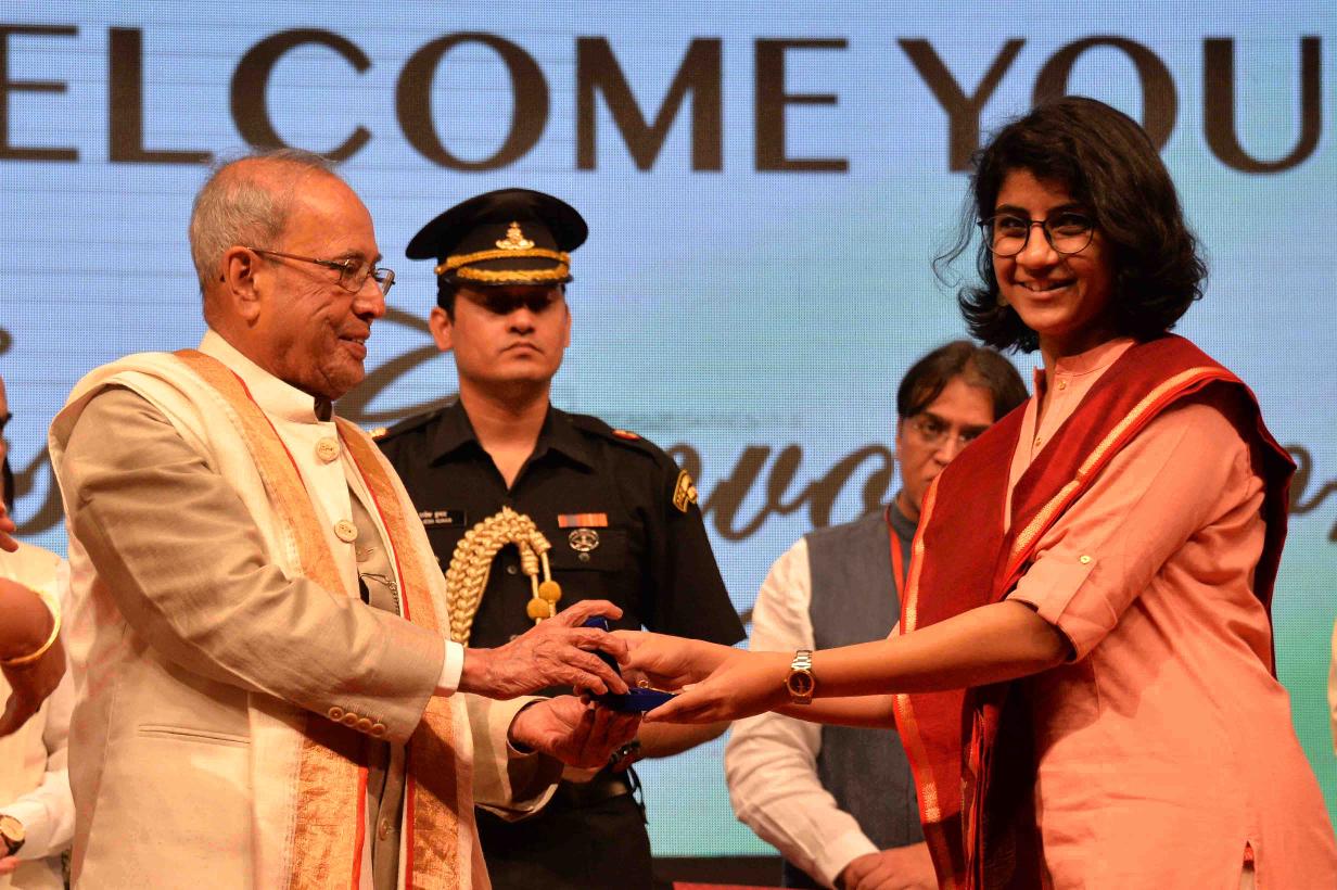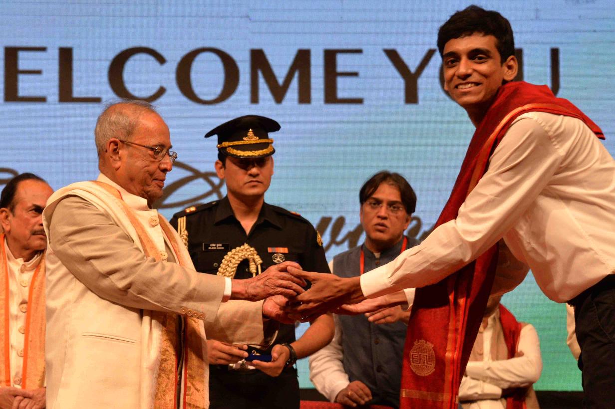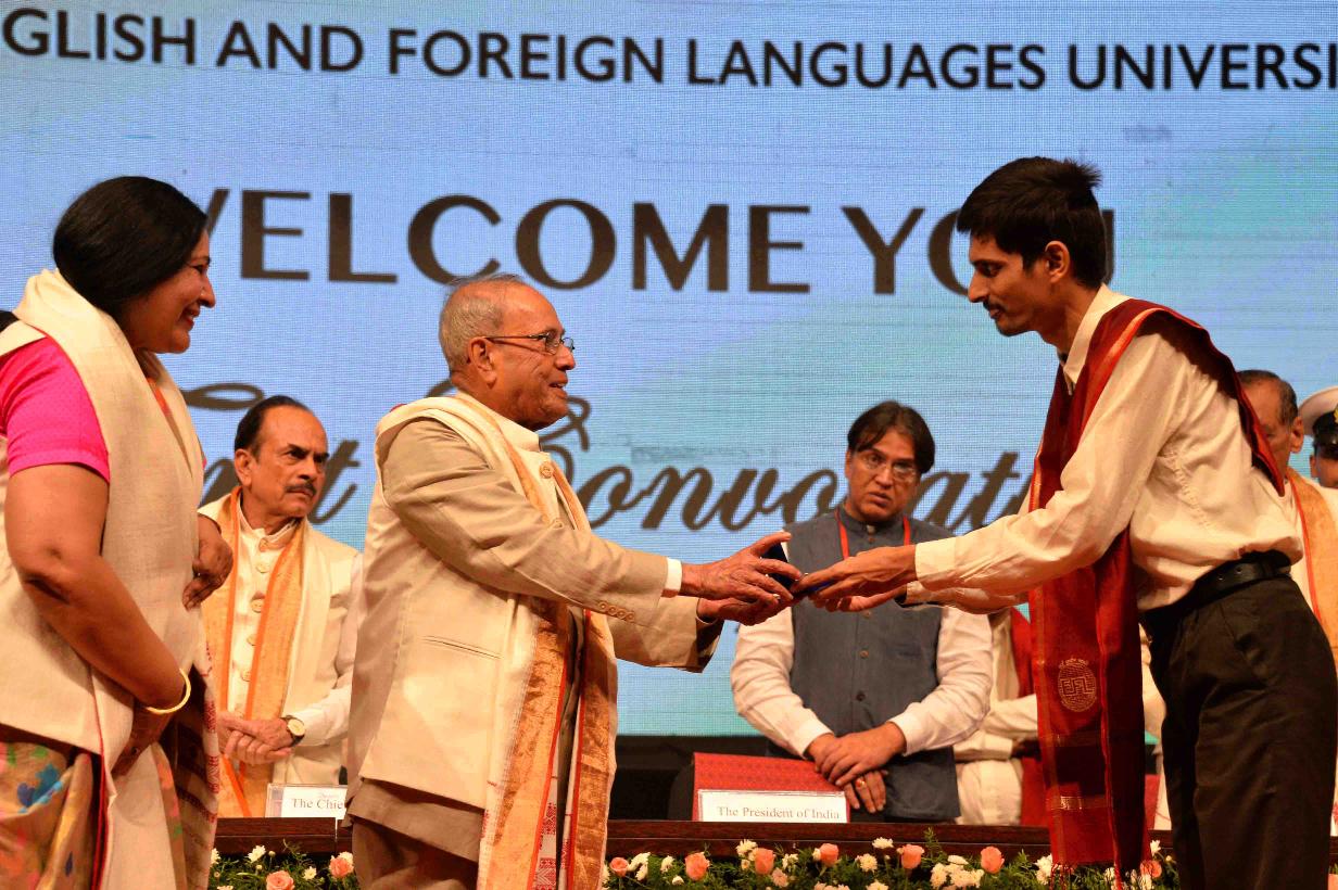 | Caption: | The President of India, Shri Pranab Mukherjee presenting the medal to the students at the First Convocation of the English and Foreign Languages University, at Hyderabad in Telangana on April 26, 2017. |