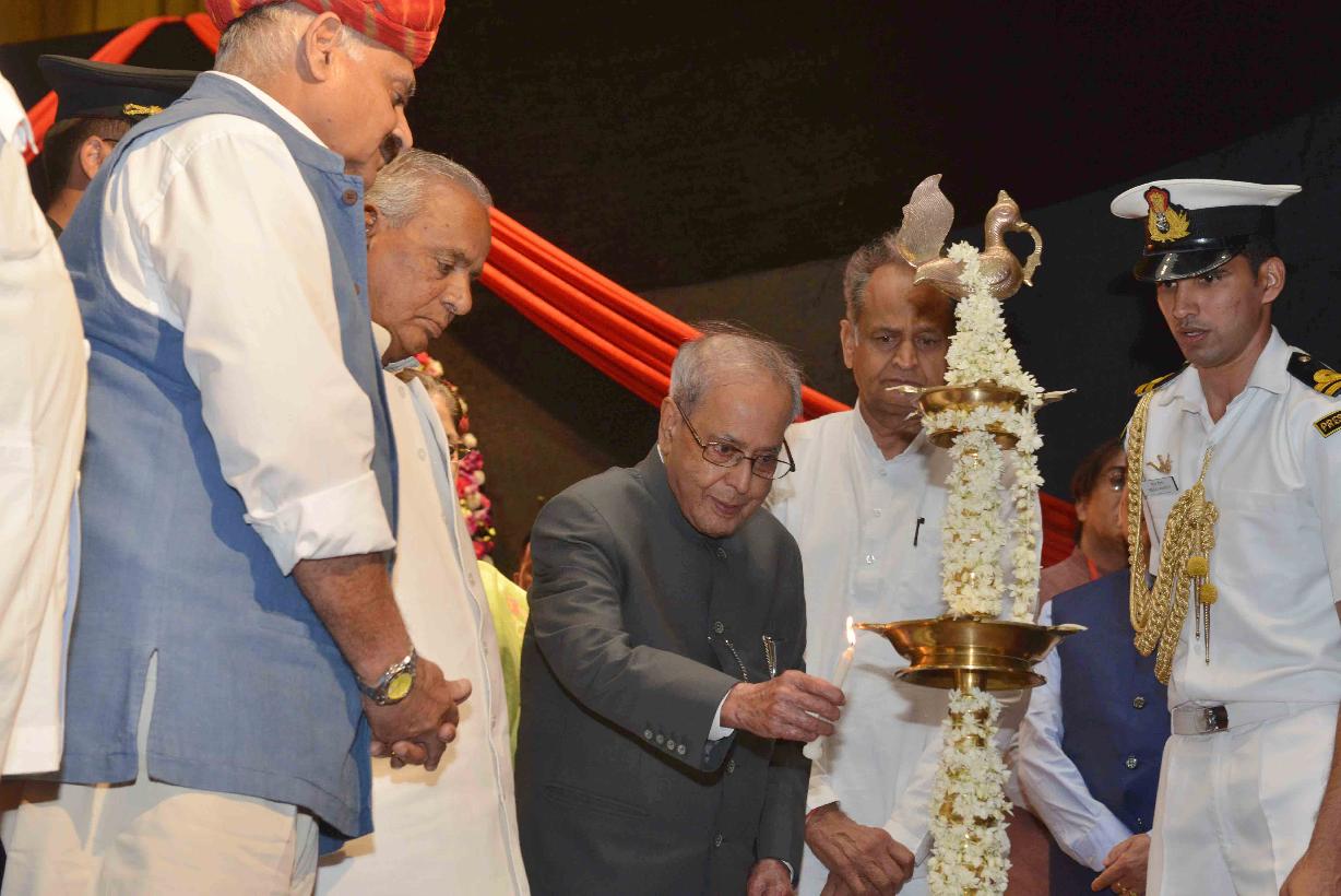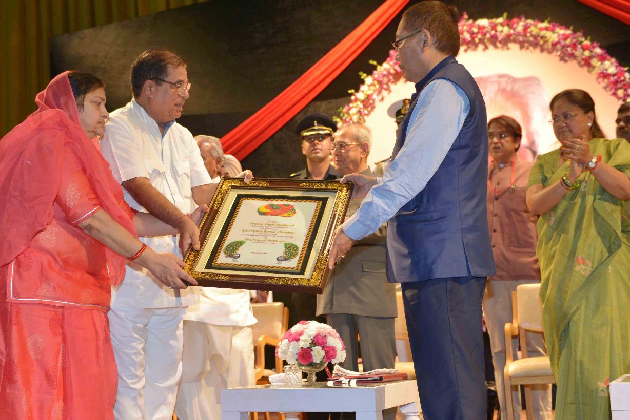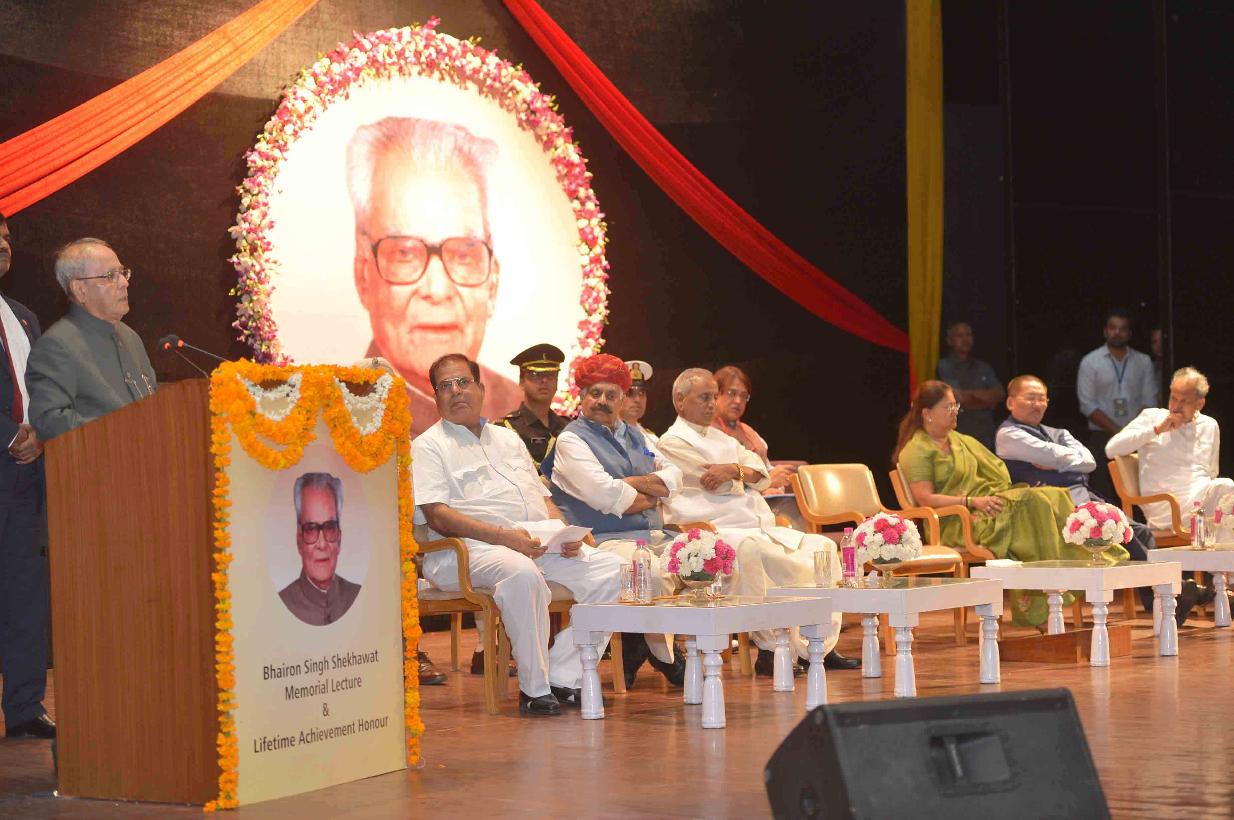 | Caption: | The President of India, Shri Pranab Mukherjee delivering the First Bhairon Singh Shekhawat Memorial Lecture, at Jaipur, in Rajasthan on May 15, 2017. The Chief Minister of Sikkim, Shri Pawan Kumar Chamling being presented the First Bhairon Singh Shekhawat Life Time Achievement Honour in Public Service on the occasion. |