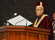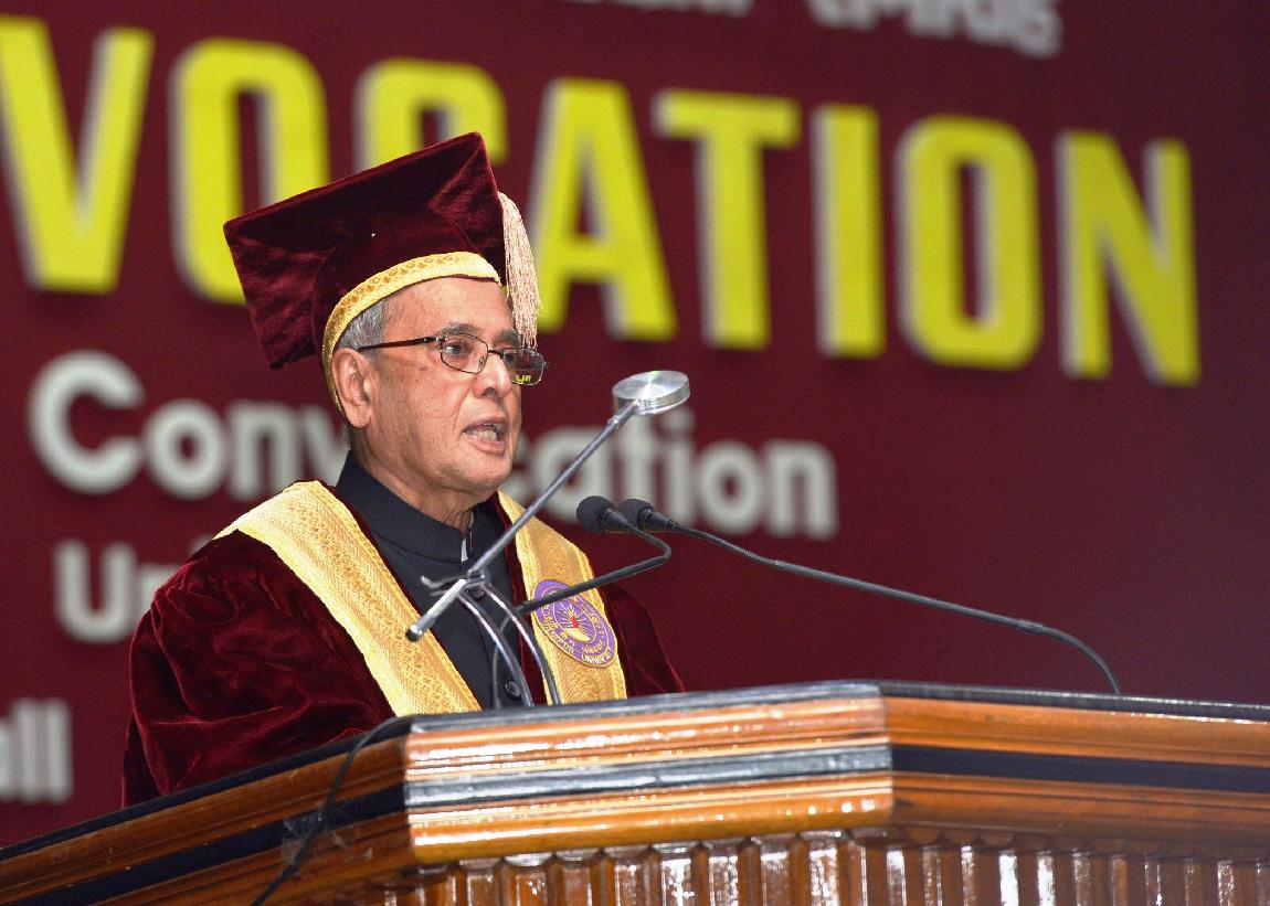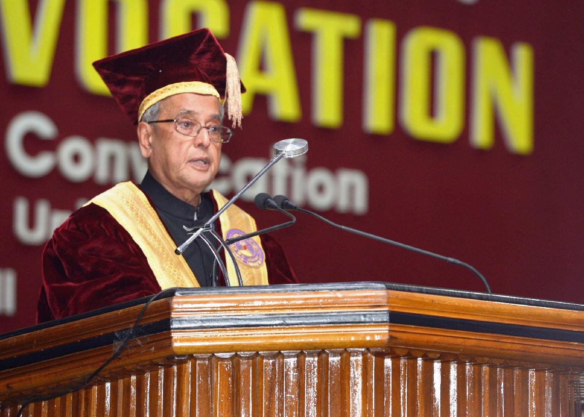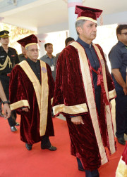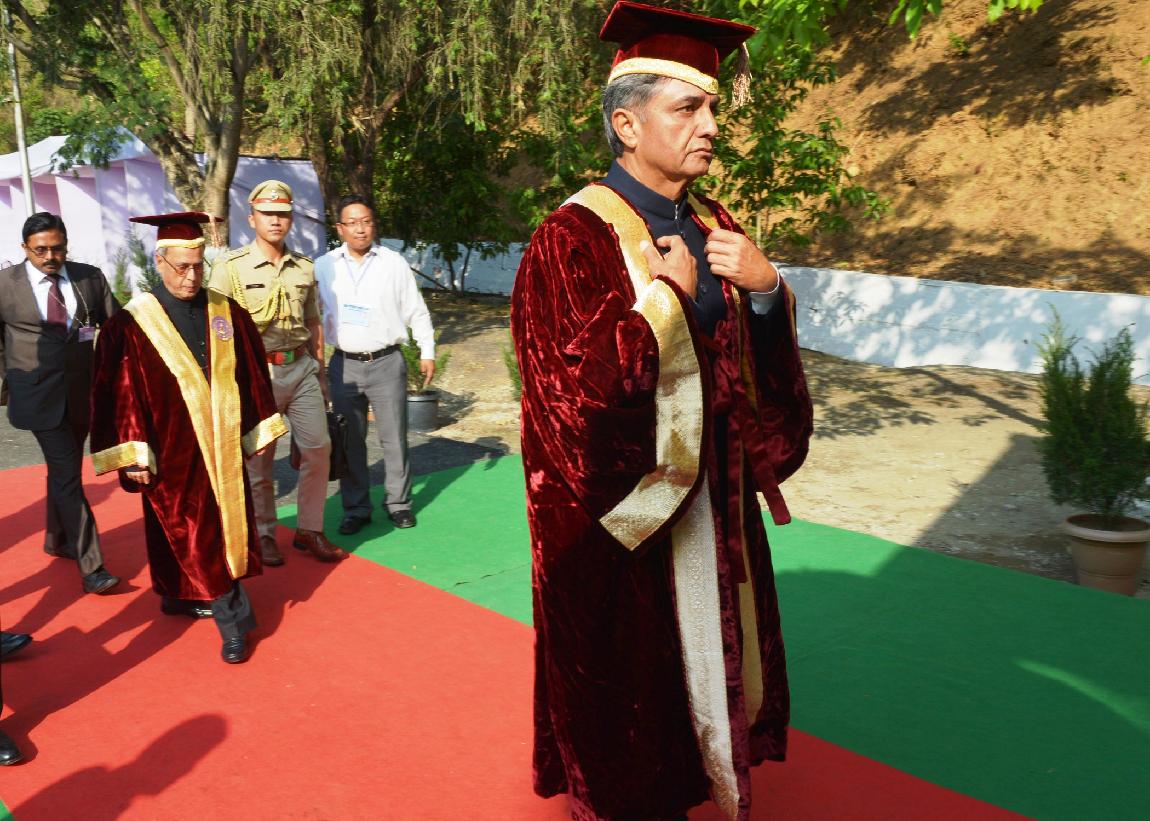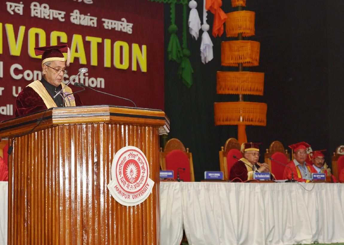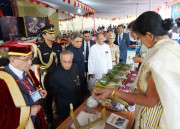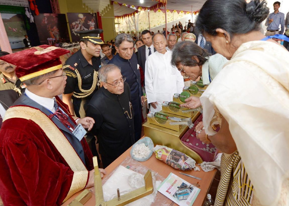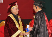 | Caption: | The President of India, Shri Pranab Mukherjee conferring Honorary Degrees to Shri Rishang Keishing and Shri L Birendrakumar Singh during 14th Convocation of Manipur University at Canchipur in Imphal, Manipur, The President also went around an Innovation Exhibition after inauguration of it on April 29, 2014 |