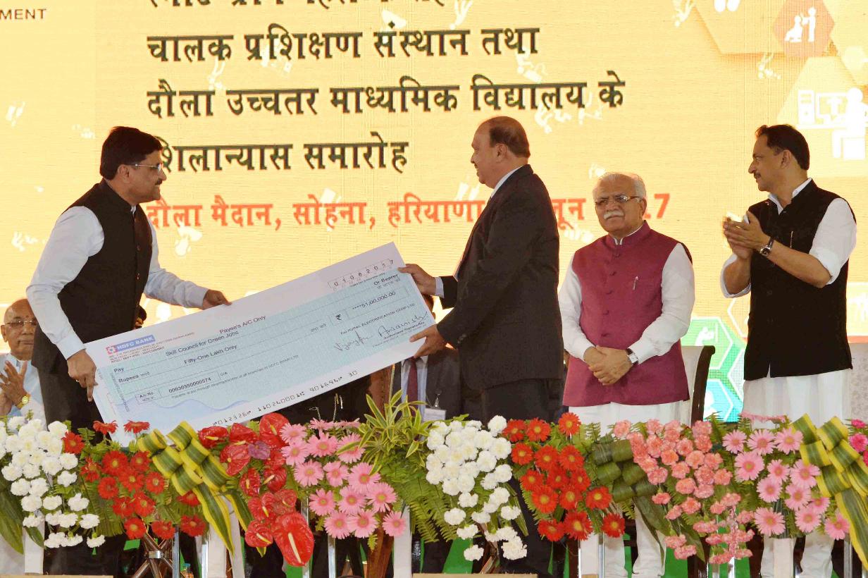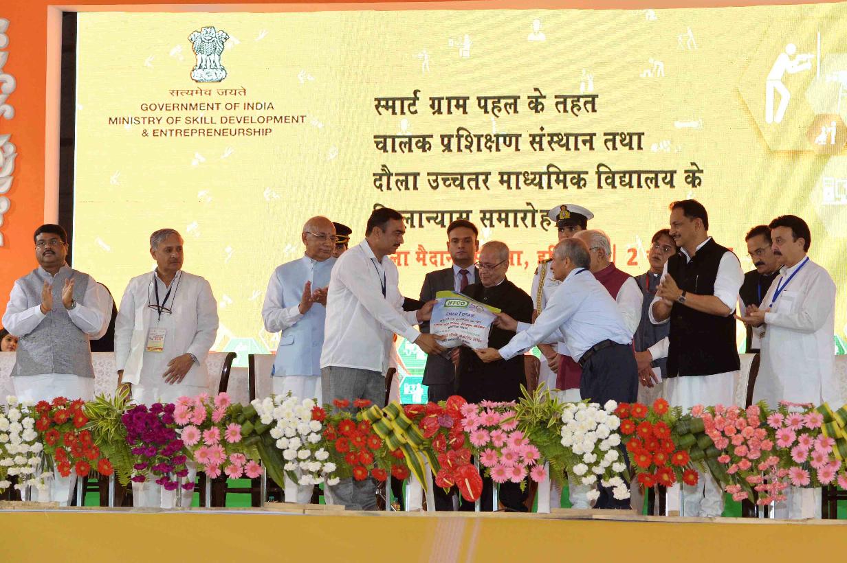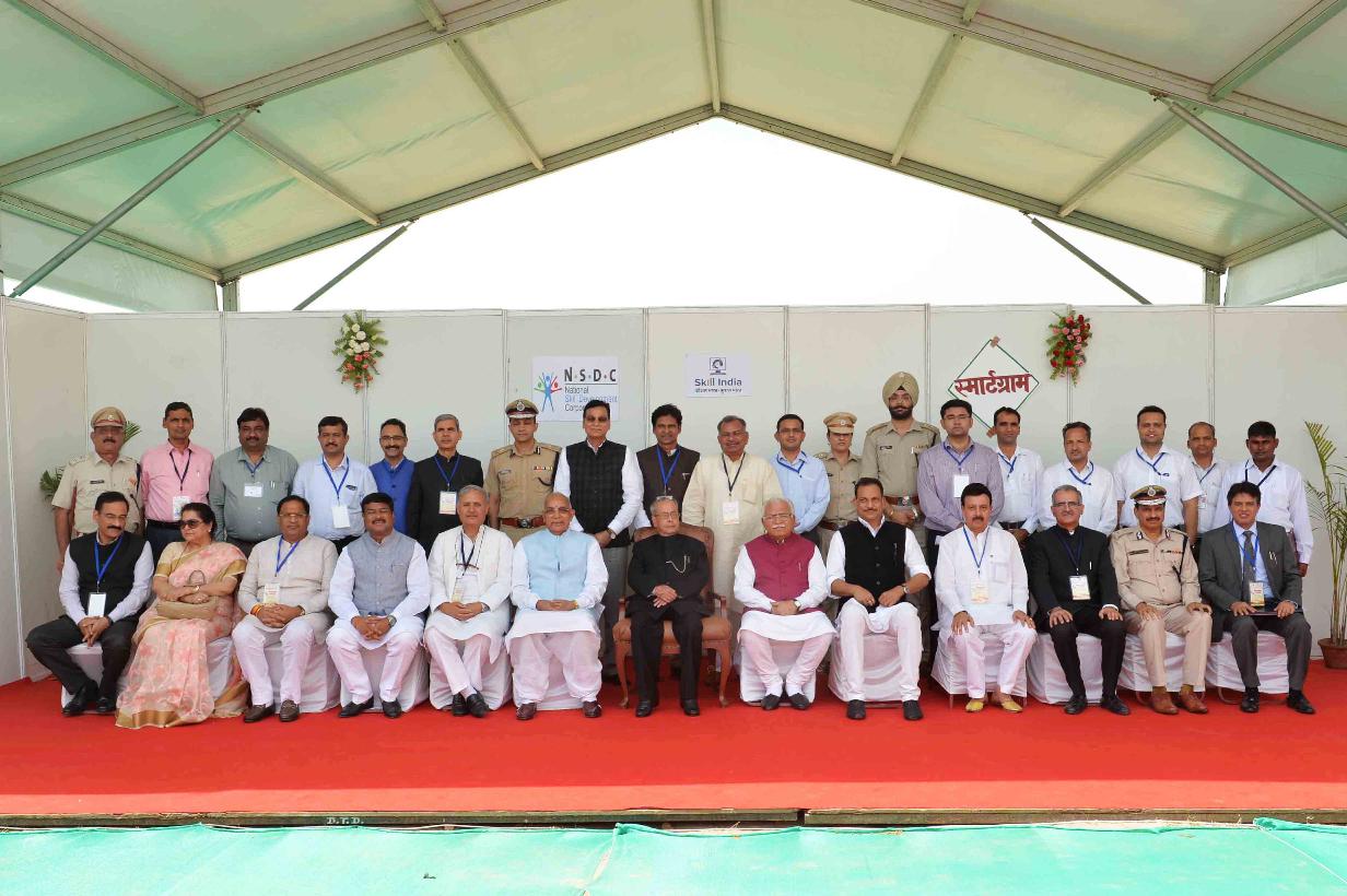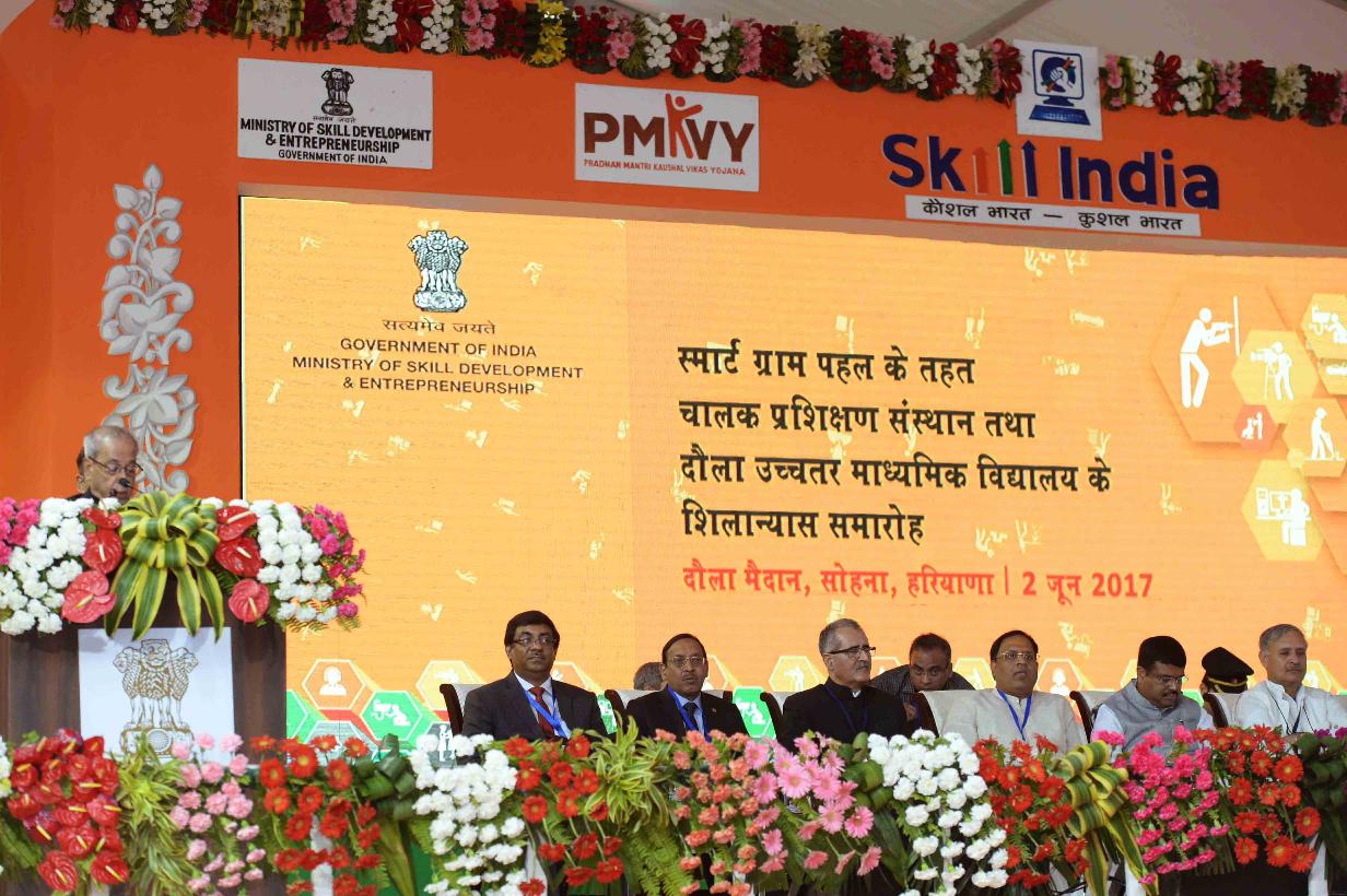 | Caption: | The President of India, Shri Pranab Mukherjee at the Foundation Stone laying of The Driver's Training Institute & Secondary School under the Smart Gram Initiative, at village Dhaula, Gurugram, in Haryana on June 02, 2017. |