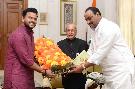 | Caption: | The President of India, Shri Pranab Mukherjee meeting with Shri Rammohan Naidu Kinjarapu, MP (LS) alongwith Shri Kinjarapu Atchannaidu, Transport Minister, Andhra Pradesh, at Rashtrapati Bhavan on June 05, 2017. |