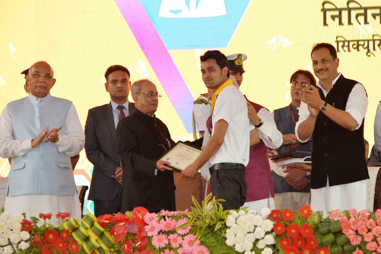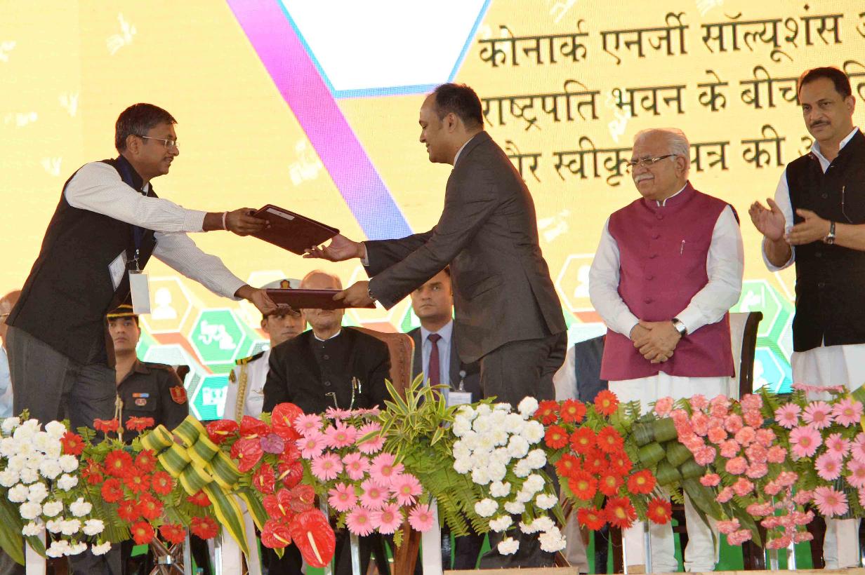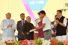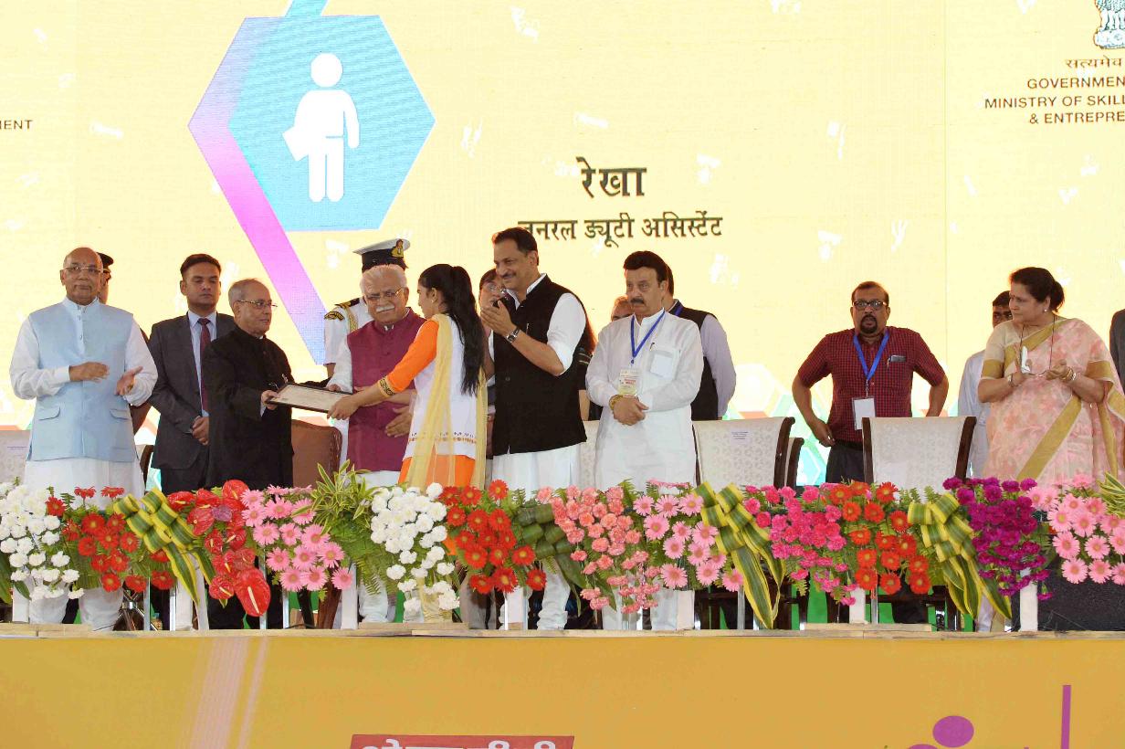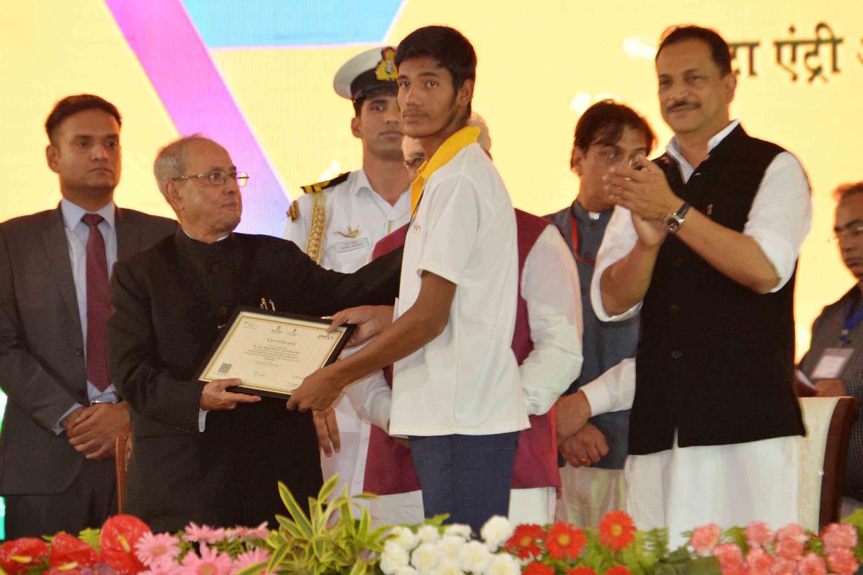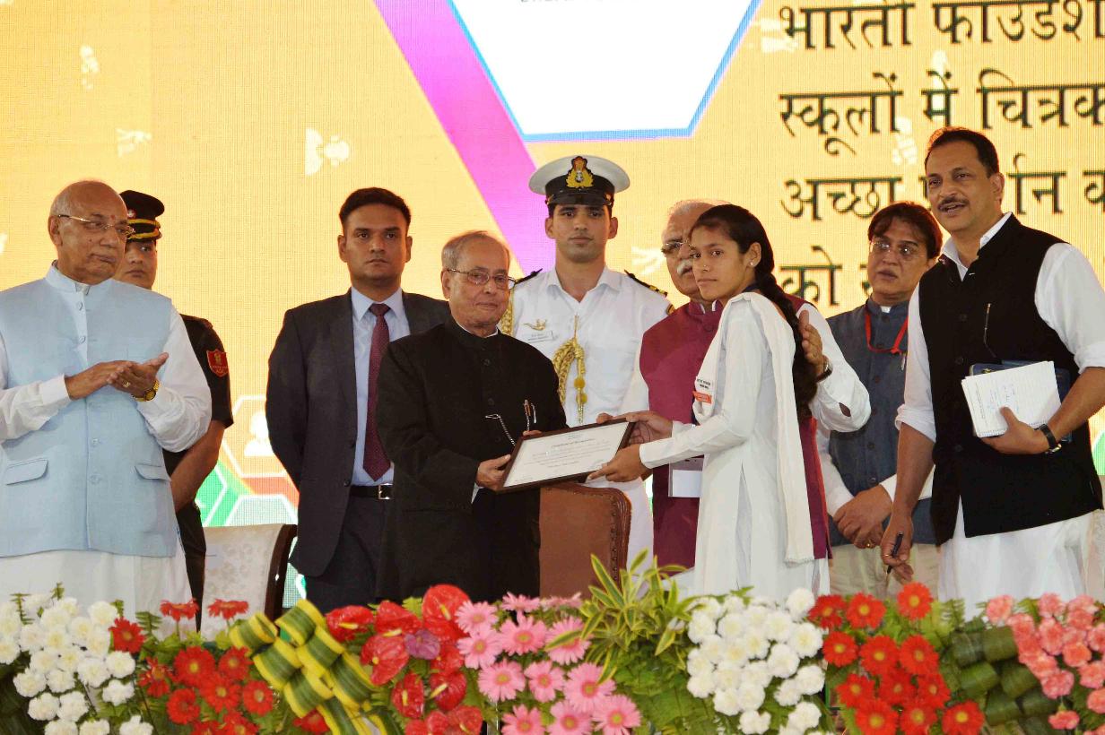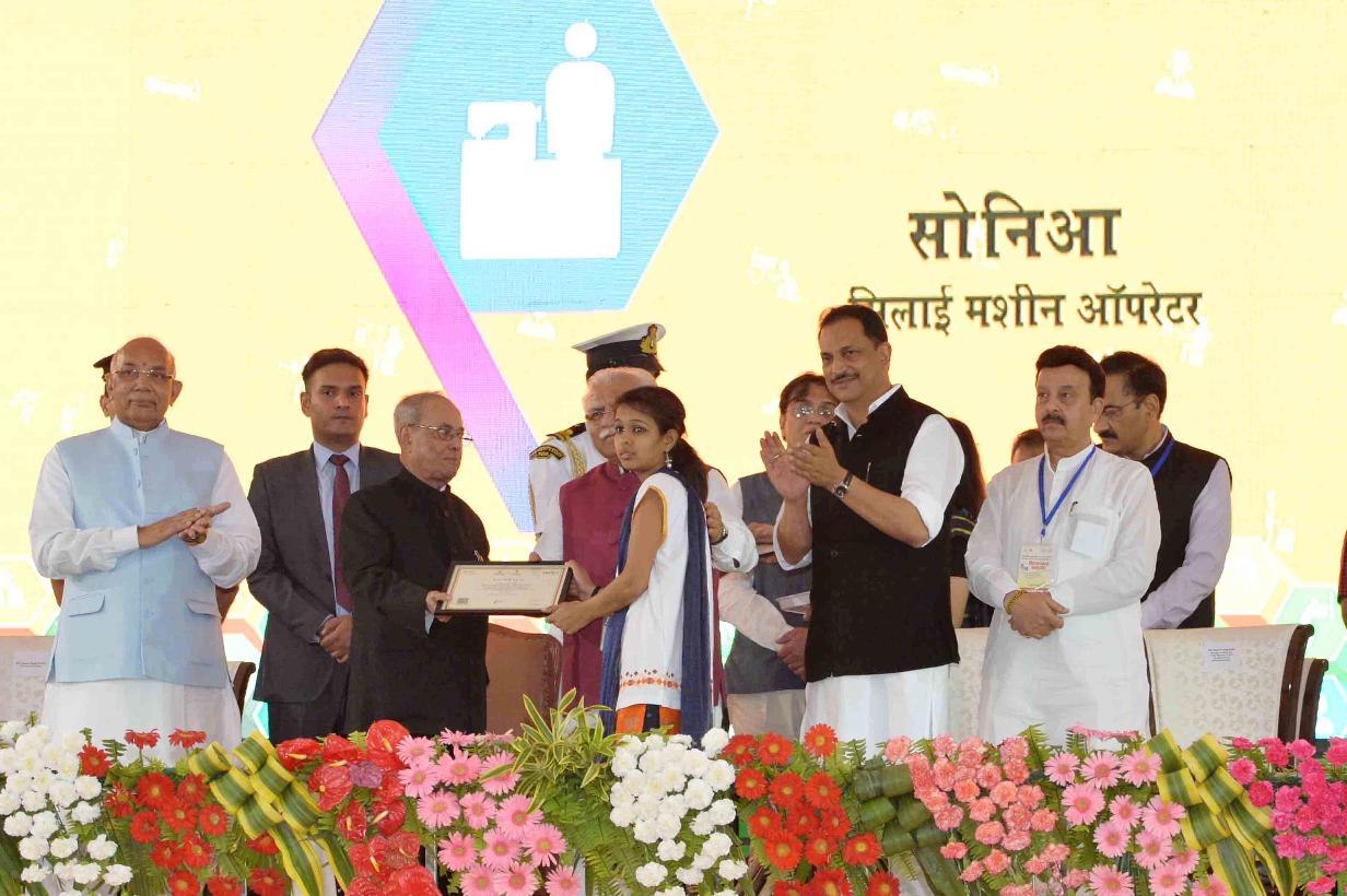 | Caption: | The President of India, Shri Pranab Mukherjee witnessing the exchange of MoUs and distributing the certificates to students/trainees under various initiatives, at the Foundation Stone laying of The Driver's Training Institute & Secondary School under the Smart Gram Initiative, at village Dhaula, Gurugram, in Haryana on June 02, 2017. |