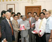 | Caption: | The President of India, Dr A P J Abdul Kalam being presented a Book "HIV/AIDS in Dental Practice" by the President of Dental Council of India, Dr Anil Kohli and others at Rashtrapati Bhavan in New Delhi on July 17, 2007 |