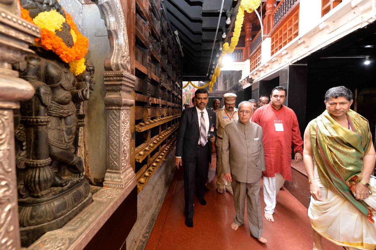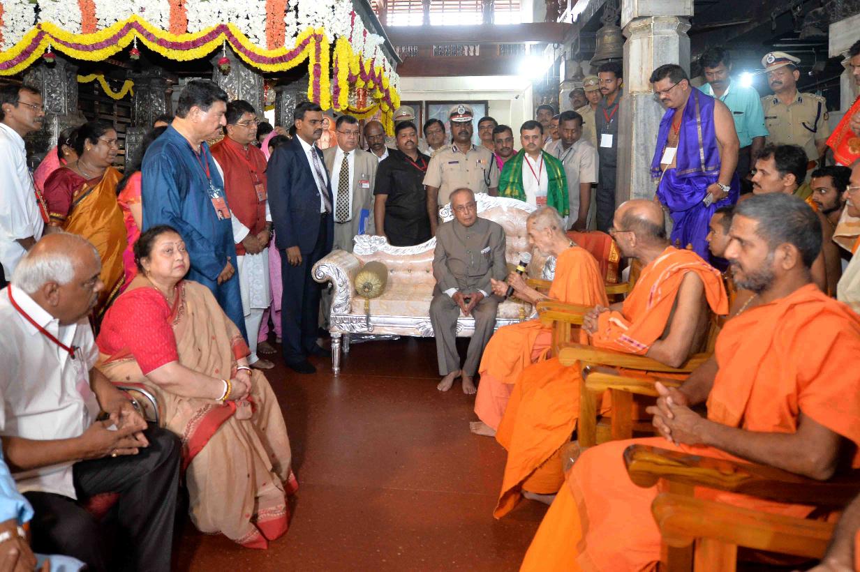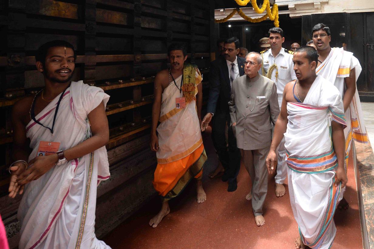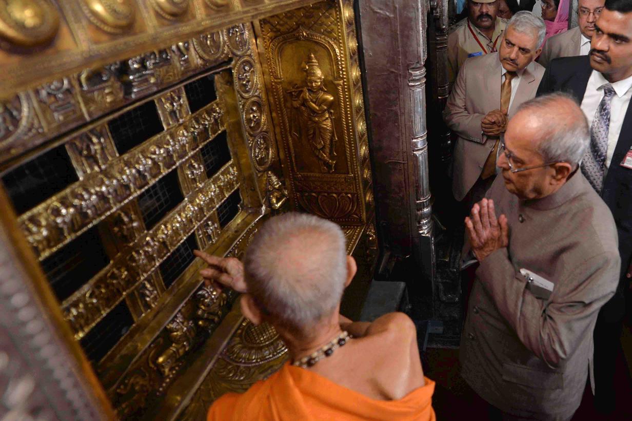 | Caption: | The President of India, Shri Pranab Mukherjee visiting the Sri Krishna Temple, at Udupi, in Karnataka on June 18, 2017. |