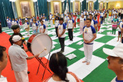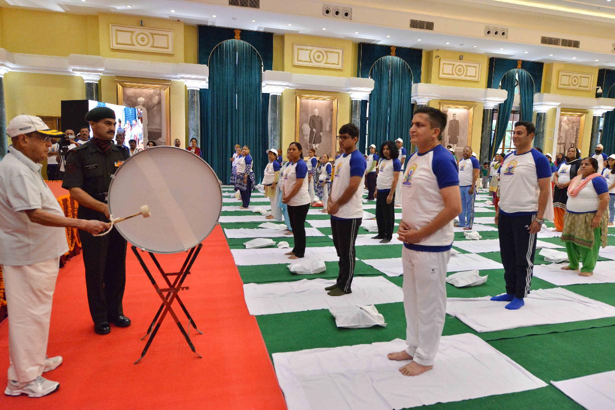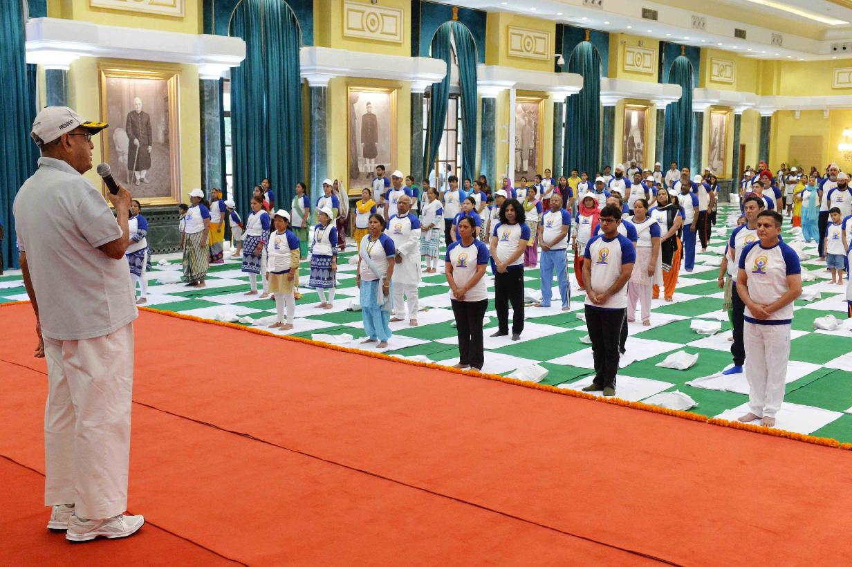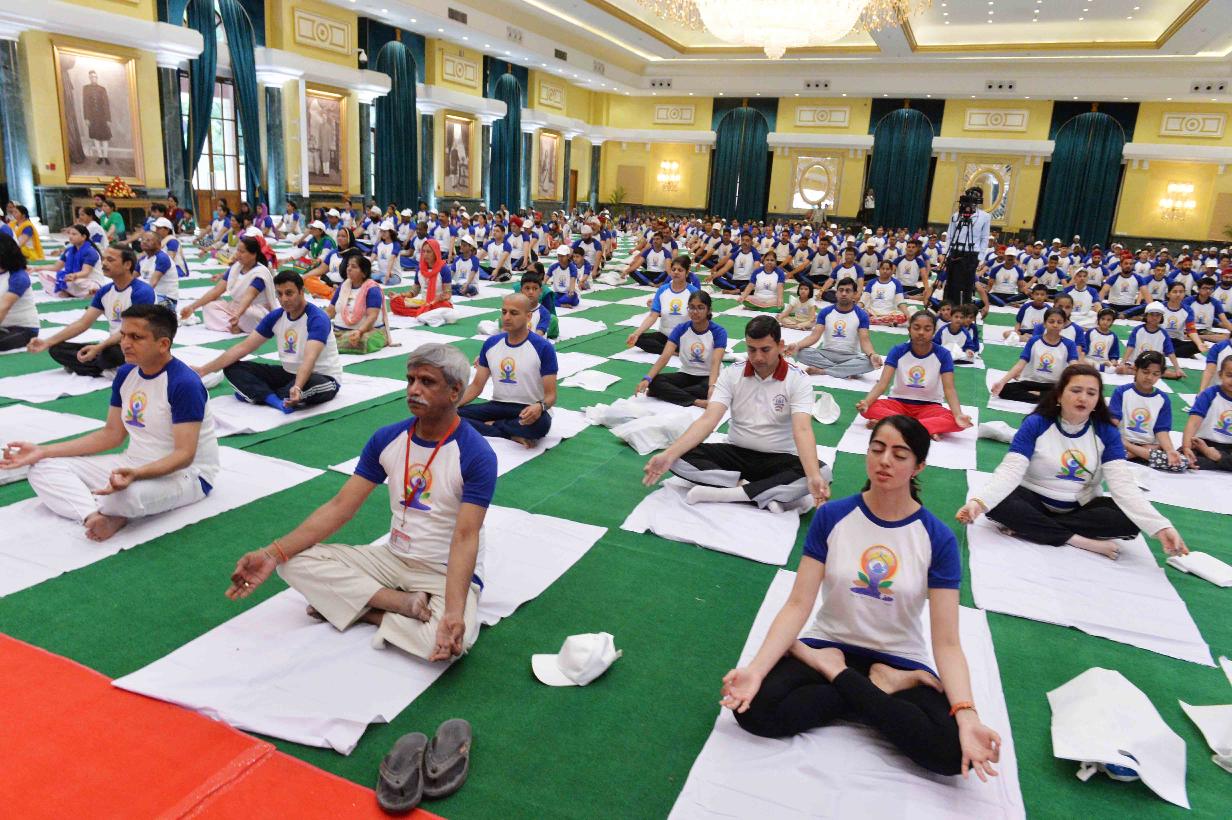 | Caption: | The President of India, Shri Pranab Mukherjee inaugurating the mass yoga demonstration to commemorate the 3rd International Yoga Day, at Rashtrapati Bhavan on June 21, 2017. |