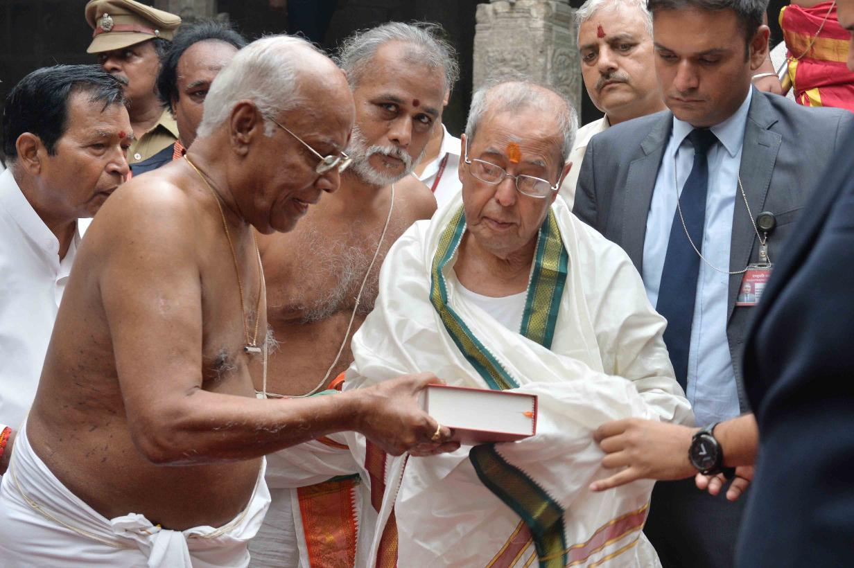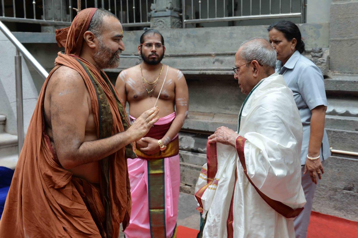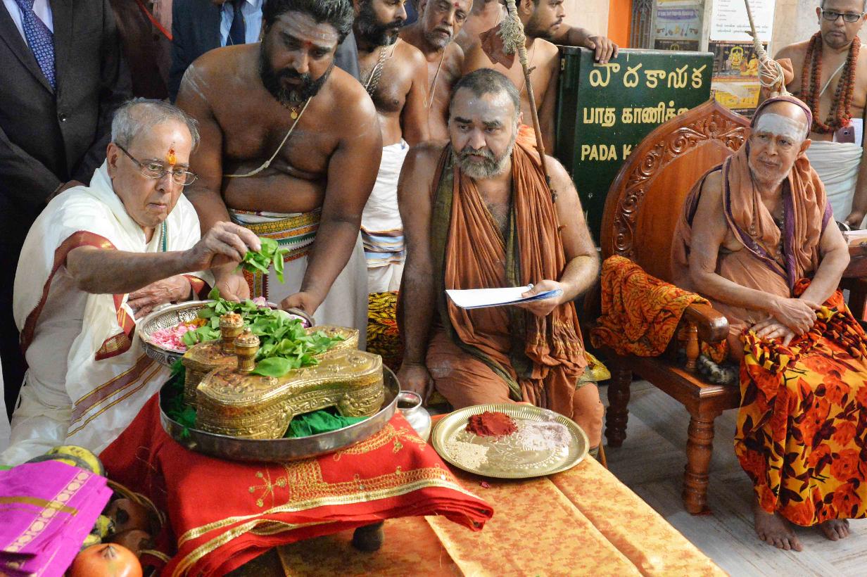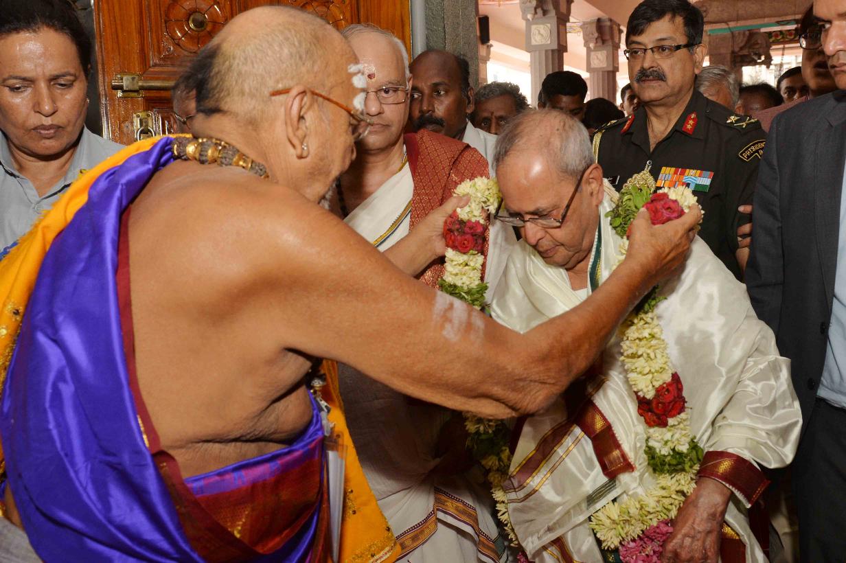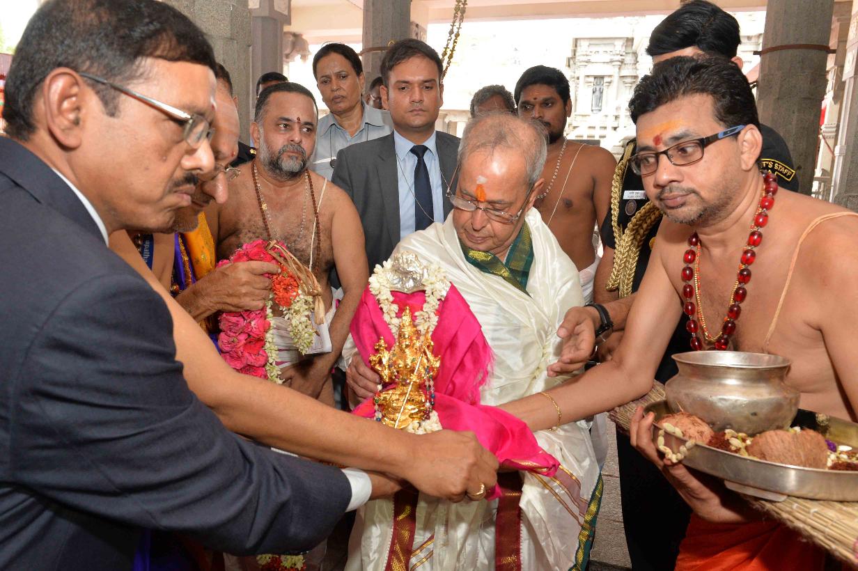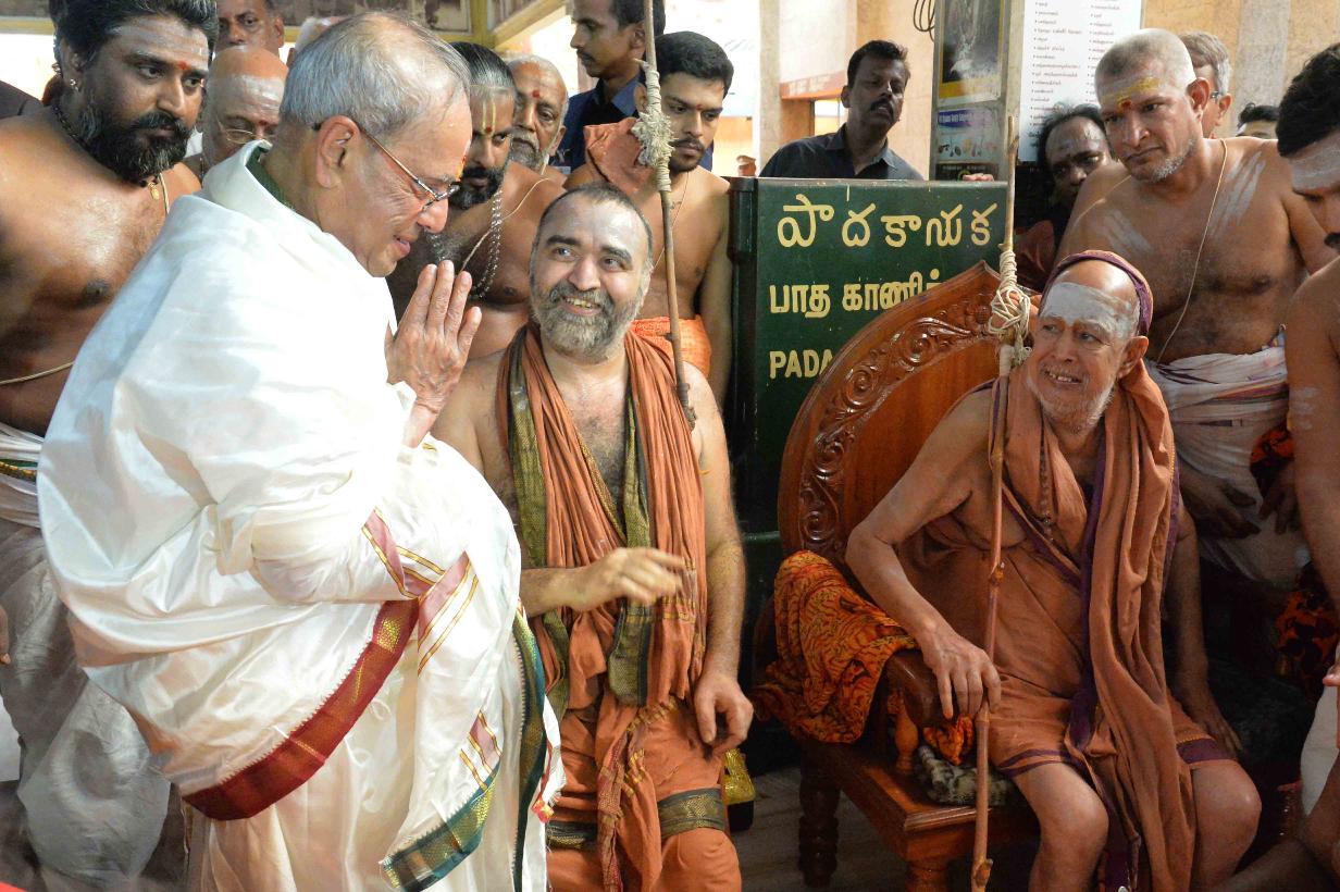 | Caption: | The President of India, Shri Pranab Mukherjee visiting Sri Kamakshi Amman Temple & Sri Sankara Mutt, at Kancheepuram, Tamil Nadu on June 13, 2017. |