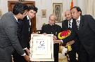 | Caption: | The President of India, Shri Pranab Mukherjee meeting with Shri Narendra Kumar Sand and family from Jaipur, at Rashtrapati Bhavan on June 23, 2017. |