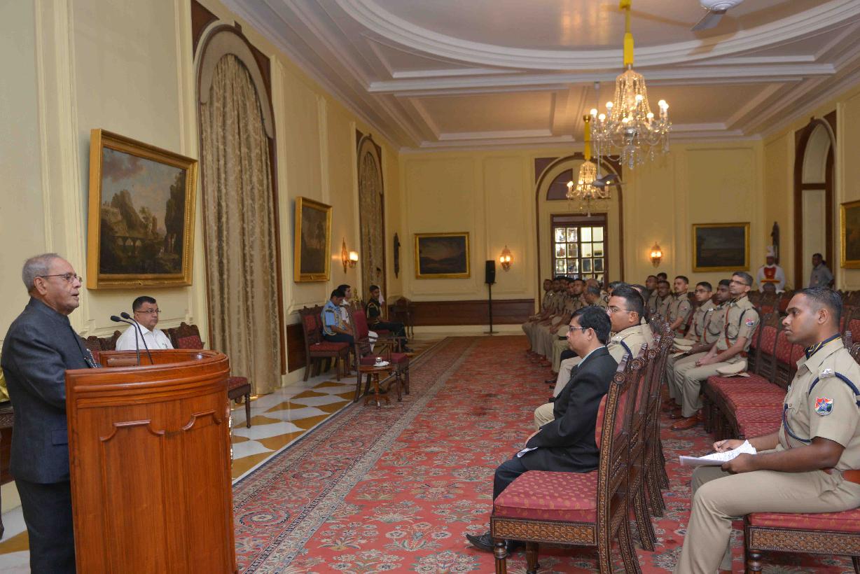 | Caption: | The President of India, Shri Pranab Mukherjee meeting with the Probationers of Railway Protection Force (2014 Batch), at Rashtrapati Bhavan on June 14, 2017. |