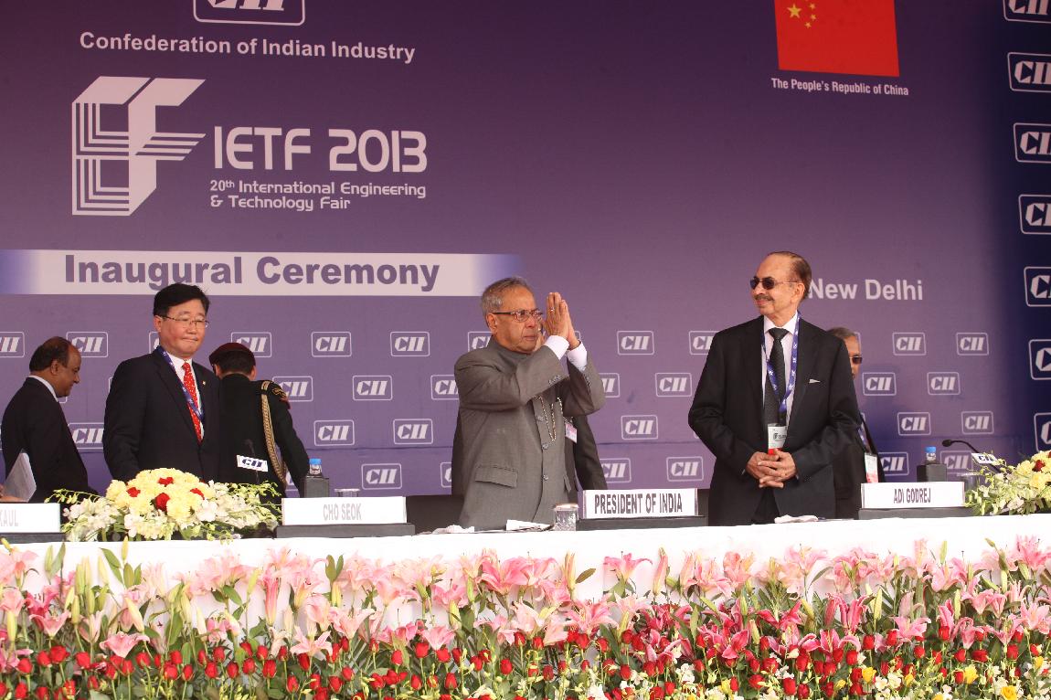 | Caption: | The President of India, Shri Pranab Mukherjee Inaugurating the 20th International Engineering & Technology Fair (IETF-2013) on Feb 15, 2013 |