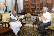 | Caption: | The President of India, Shri Pranab Mukherjee meeting with Dr. Rajendra Prasad, former Principal, Ramjas College, University of Delhi, at Rashtrapati Bhavan on June 24, 2017. |