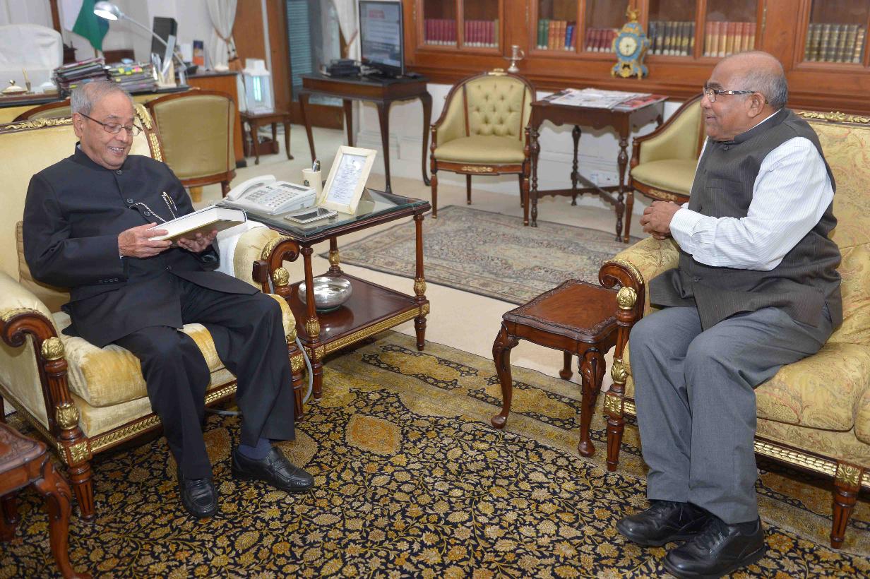 | Caption: | The President of India, Shri Pranab Mukherjee receiving a copy of the book ''Advice & Dissent: My Life in Public Service'' from Dr. Y. Venugopal Reddy, former Governor, Reserve Bank of India, at Rashtrapati Bhavan on June 28, 2017. |