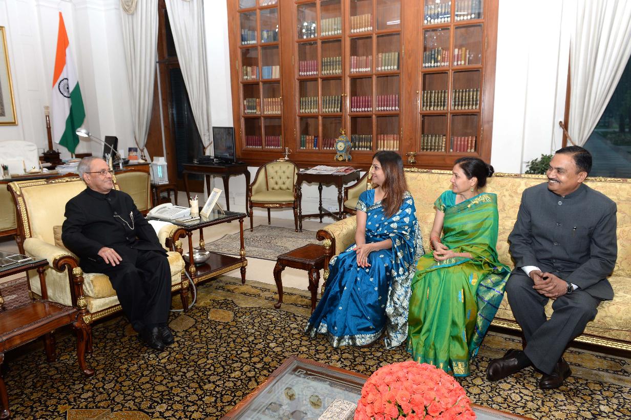 | Caption: | The President of India, Shri Pranab Mukherjee meeting with Maj. Gen. (Retd.) J.K.S. Parihar, former Addl. DG, AFMS alongwith his family, at Rashtrapati Bhavan on June 26, 2017. |