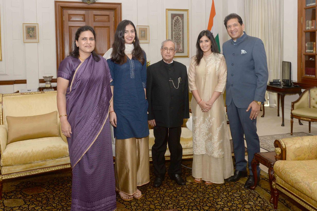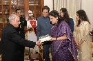 | Caption: | The President of India, Shri Pranab Mukherjee meeting with Smt. Gaitri Issar Kumar, former Additional Secretary-Social Secretary to the President and Ambassador-designate of India to the Kingdom of Belgium, Luxembourg and the European Union alongwith her family members, at Rashtrapati Bhavan on July 01, 2017. |