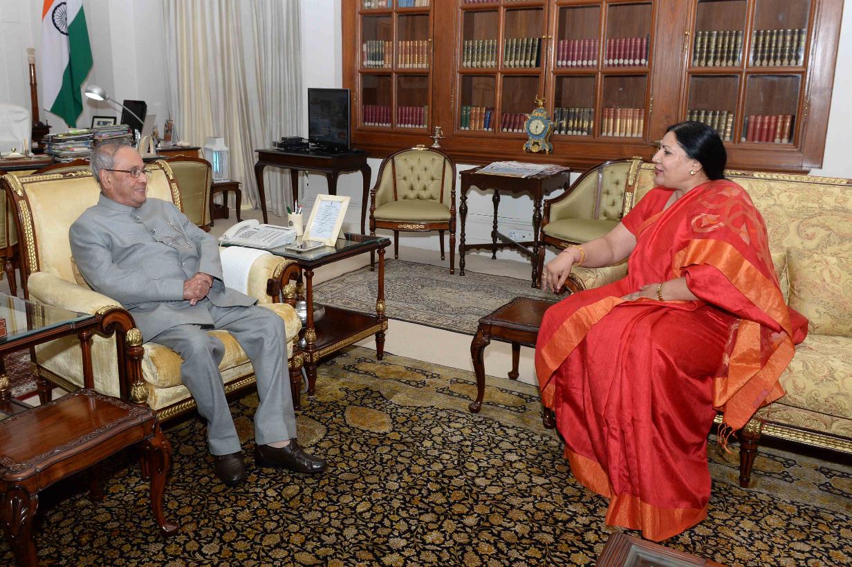 | Caption: | The President of India, Shri Pranab Mukherjee meeting with Prof. Sunaina Singh, Vice Chancellor, Nalanda University, at Rashtrapati Bhavan on July 06, 2017. |