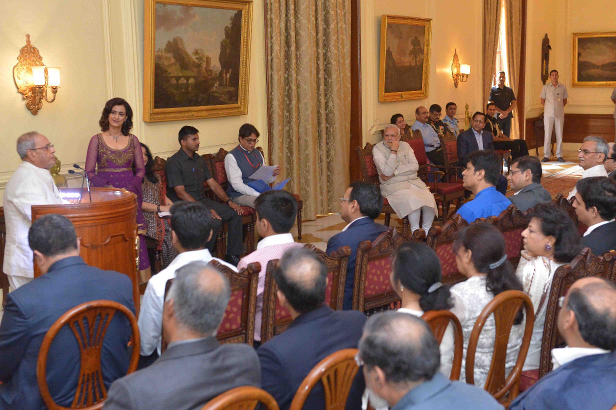 | Caption: | The President of India, Shri Pranab Mukherjee receiving the first copy of a book President Pranab Mukherjee A Statesman from Prime Minister of India, Shri Narendra Modi who formally released it, at Rashtrapati Bhavan on July 02, 2017. |