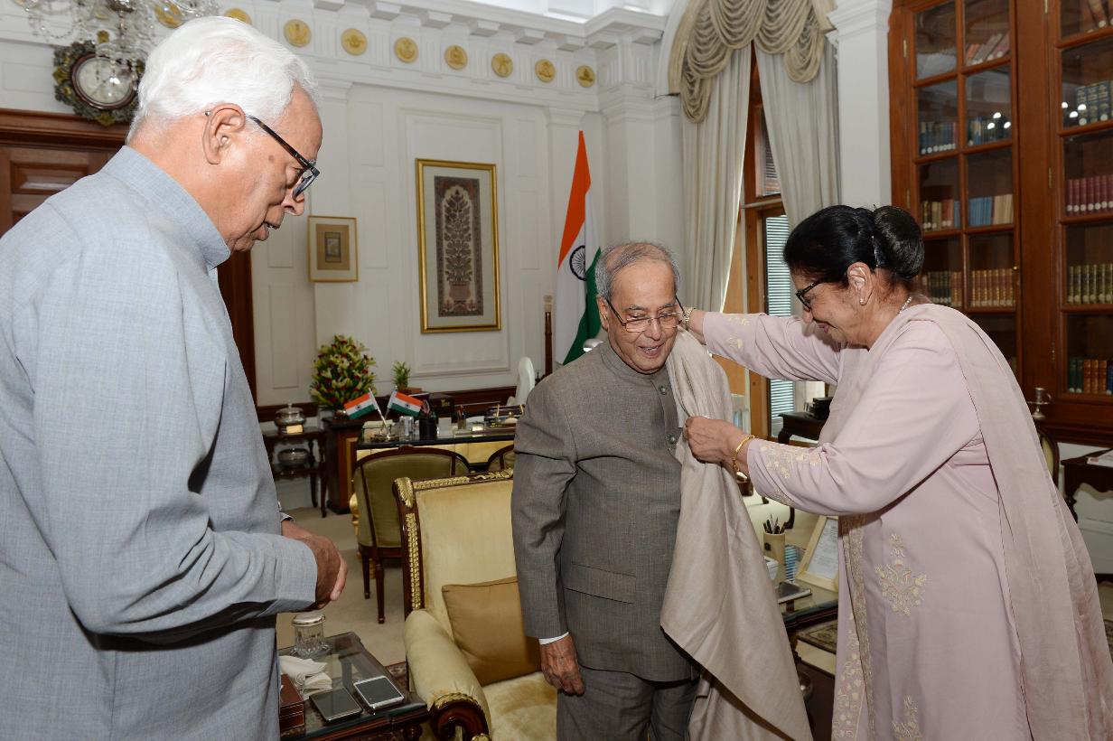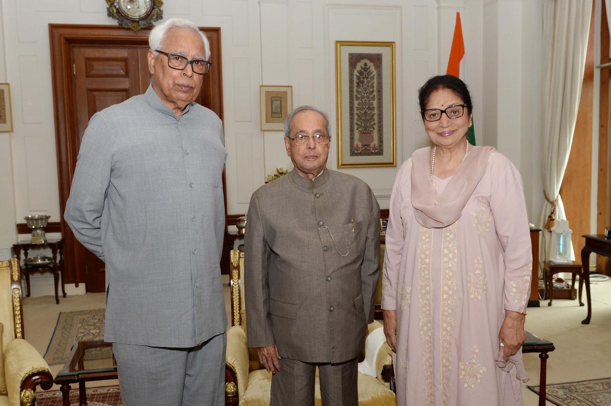 | Caption: | The President of India, Shri Pranab Mukherjee meeting with Smt.& Shri N.N. Vohra, Governor of Jammu & Kashmir, at Rashtrapati Bhavan on July 12, 2017. |