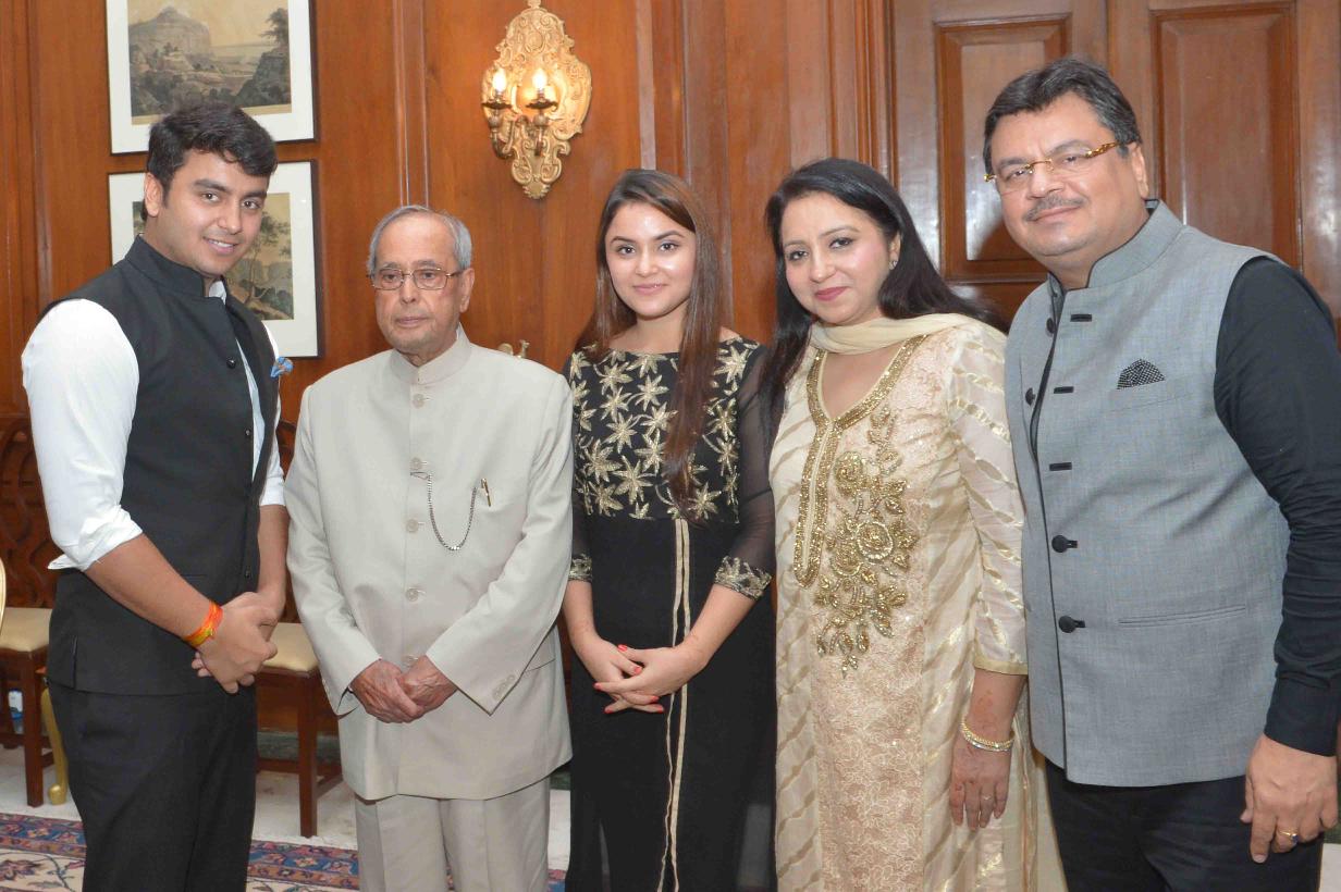 | Caption: | The President of India, Shri Pranab Mukherjee meeting with Shri Justice Kailash Gambhir (Retd.) and Shri Ranjit Kapoor alongwith their families, at Rashtrapati Bhavan on July 08, 2017. |