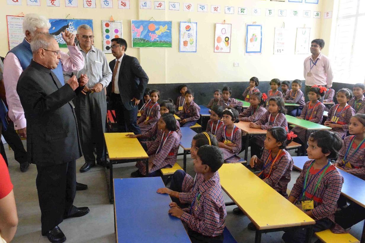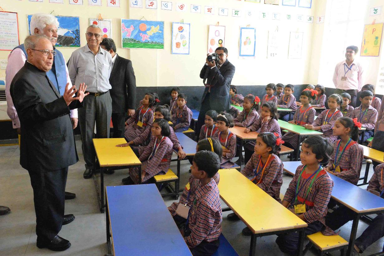 | Caption: | The President of India, Shri Pranab Mukherjee inaugurating the Satya Bharti School-Kanidighi and interacting with the students, at Jangipur, Murshidabad, in West Bengal on July 14, 2017. |