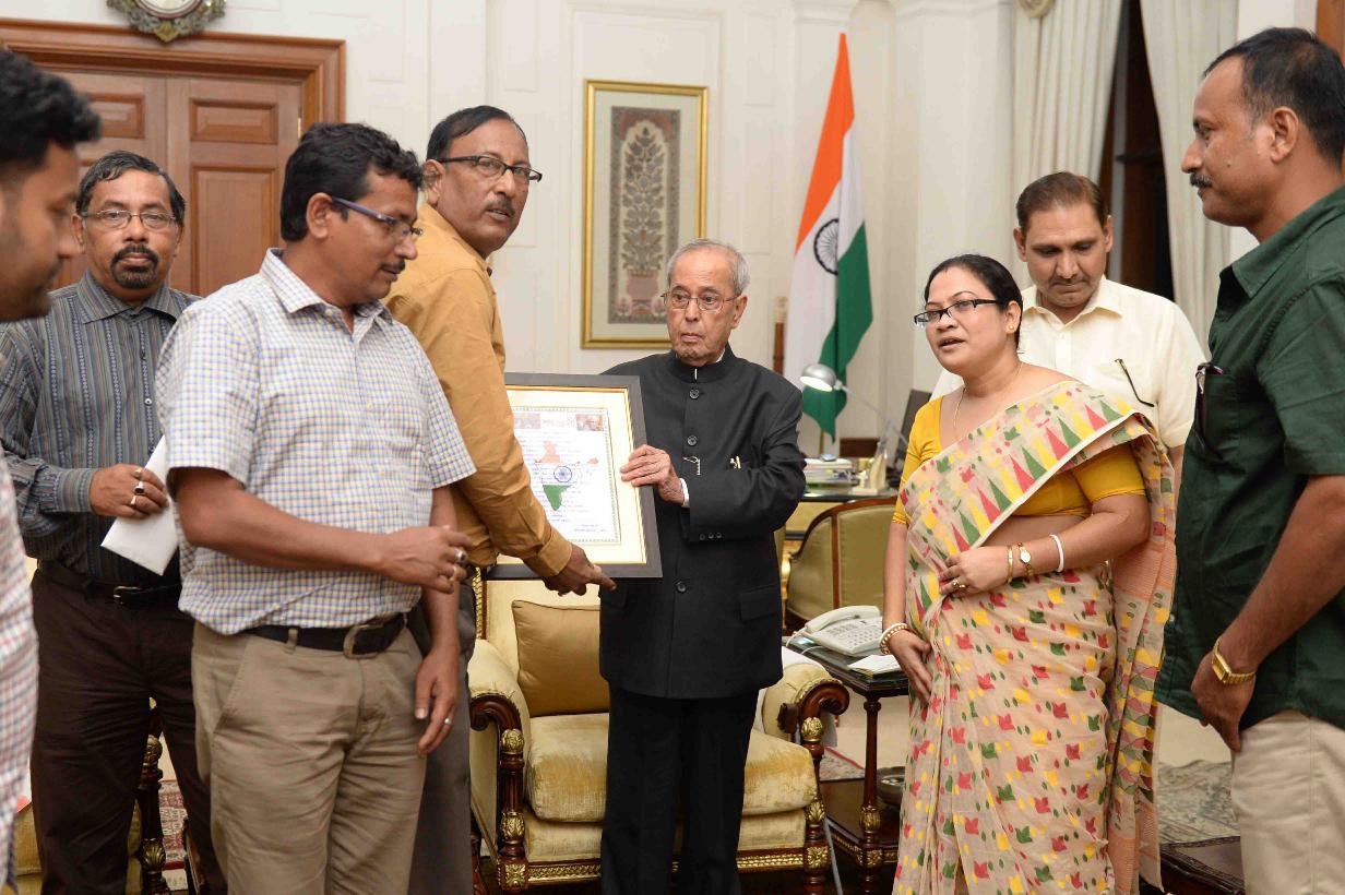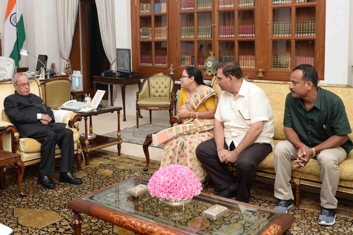 | Caption: | The President of India, Shri Pranab Mukherjee meeting with Smt. Minakshi Dey, Councilor, Haringhata Municipality, Nadia alongwith her family members, at Rashtrapati Bhavan on July 17, 2017. |